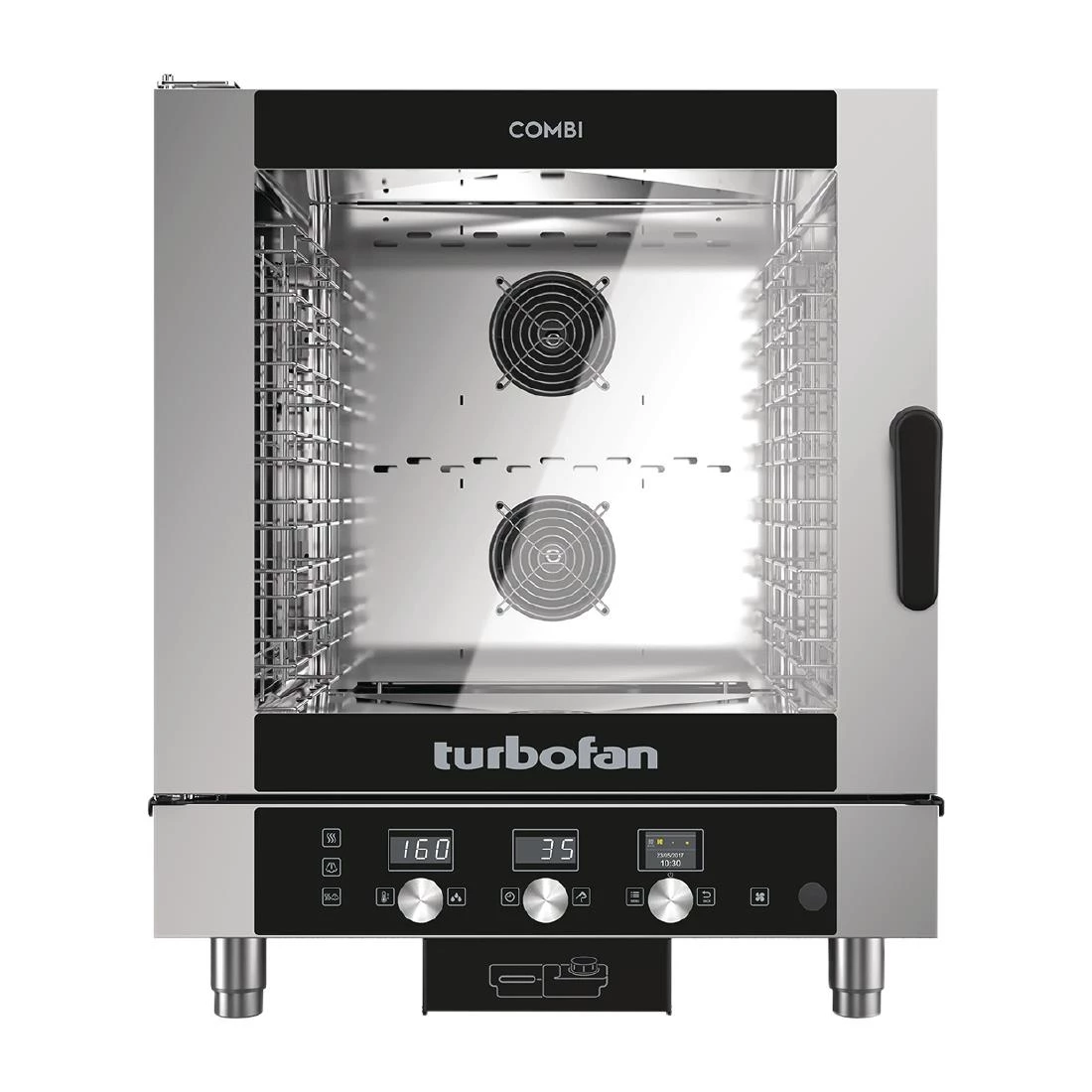 Generous internal capacity meets impressive commercial cooking performance with the EC40D7 Blue Seal Turbofan 6 Grid Digital Combi Oven. With fantastic front-of-house looks and user-friendly programmable control, the oven is perfect for use in cafés, bakeries and concession stands, as well as behind the scenes in restaurants or school kitchens. Great for steaming, baking or a combination of both, the combi delivers consistent, reliable results every time at the touch of a button. The combi also features a highly convenient automatic cleaning and self-diagnostic system, ensuring effective, hygienic operation and a long working life cycle.