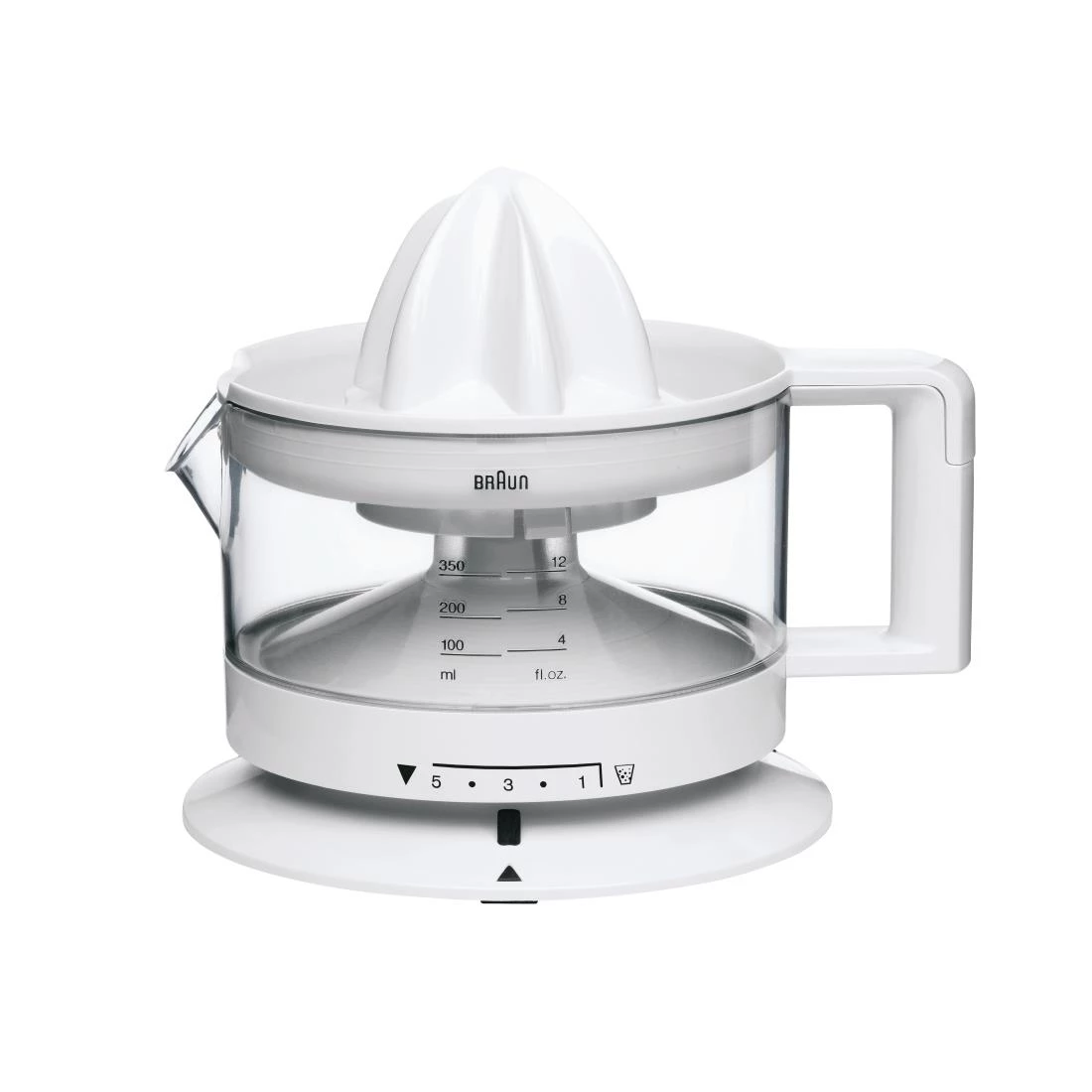 Extract every last drop of refreshing juice from fruit with the CJ3000 Braun Tribute citrus juicer. Compact and stylish, the juicer is incredibly easy to use – just cut the fruit in half and push down onto the juicing mechanism. The automatic start and alternating rotation juicing cone optimises the whole process, making it much faster and more efficient than labourious hand juicing.