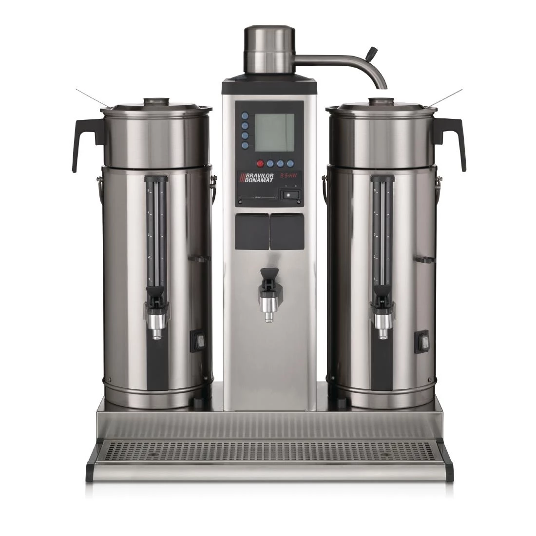 - 2 x 20 Ltr double-walled removable containers with electric heating take your coffee to serving areas and keep it warm