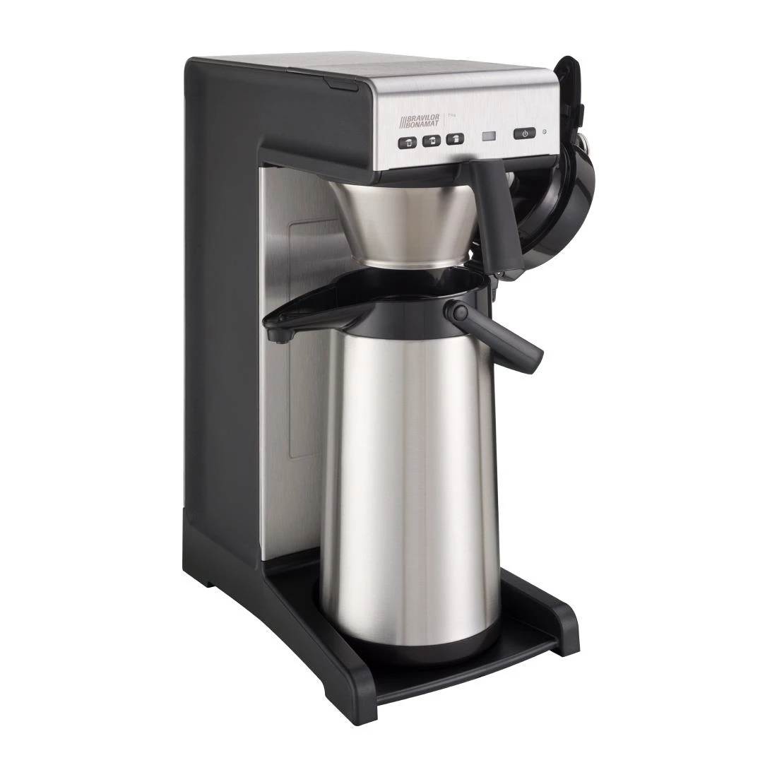 Quick filter machines for brewing coffee directly into a vacuum container or airpot. For locations with mains water connection. Including stainless steel filter pan. Excluding vacuum container or airpot.
