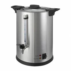 The Bravilor Bonamat coffee percolator allows you to brew large quantities of coffee quickly and easily – just fill the percolator manually with the desired quantities of water and ground coffee. At the end of the brewing cycle, the percolator switches automatically into keep warm mode. The stainless steel tap allows you to dispense the right amount of coffee. The gauge glass indicates the amount of coffee remaining in the container. The coffee is kept warm as long as the percolator is switched on. The moulded handles allow you to move the unit around.