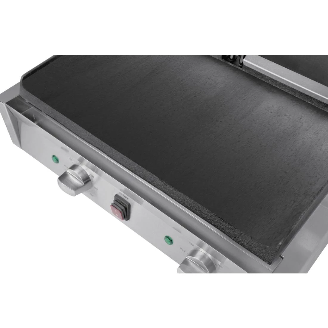 Take complete control over your grilling with the professional Bistro double contact grill from Buffalo. A superbly powerful and reliable addition to any commercial catering setup, the grill provides independently-controlled cooking plates, so you’ve got the flexibility to cook two different dishes at different temperatures simultaneously. And as each plate is flat, cooking is fast and consistent – quickly browning chicken breast, fish, steaks or panini.