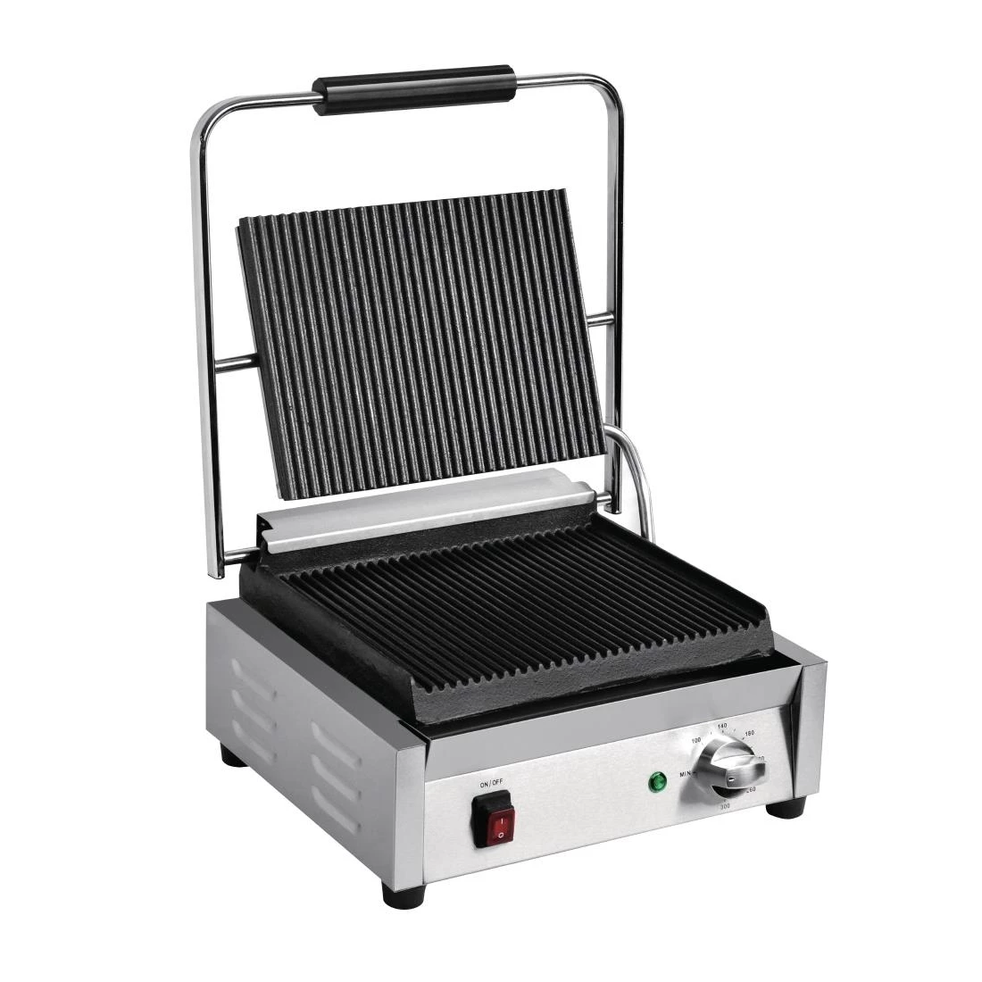 Designed for everyday professional use, the grill combines powerful cooking elements and ribbed plates, allowing you to cook delicious dishes with the grill-lines that customers crave. And thanks to the ribbed design, fat and grease is channelled away from the food to leave it healthier and more appetising. Once service is over, the grill is simple to clean down. Supplied with a handy grill scraper.