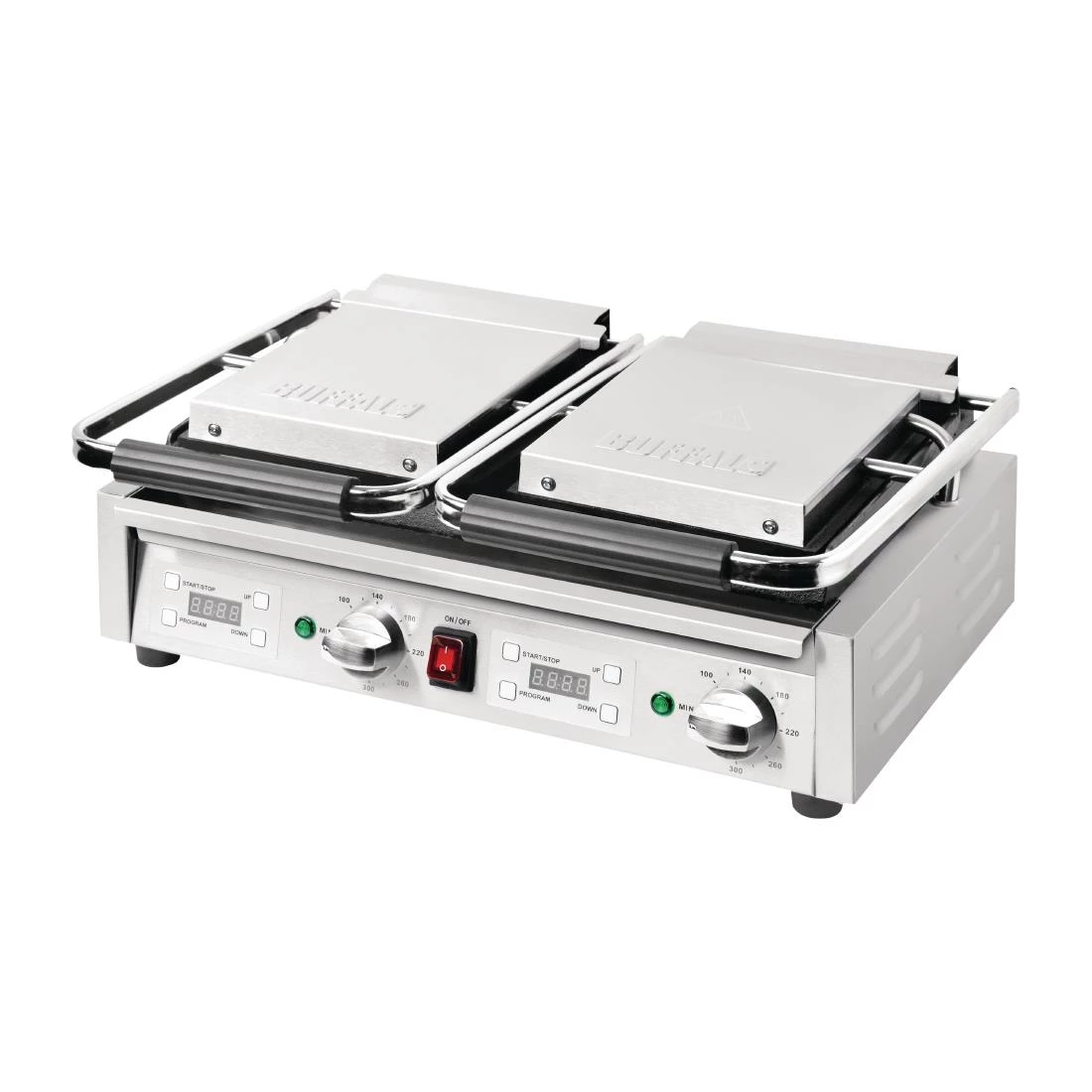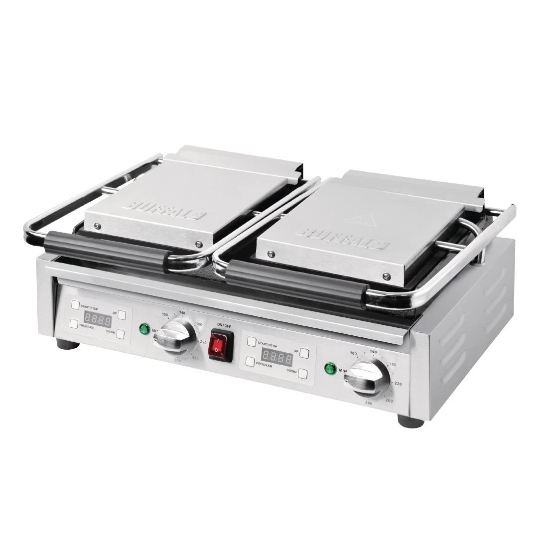 Keep up with demand by using this powerful commercial contact grill from Buffalo. With twin independently controlled hotplates, there’s plenty of power, performance and flexibility for any commercial setting. Whether you’re cooking sausage, bacon, steaks or eggs, the Buffalo makes cooking fast and easy. The addition of twin digital timers gives you precision, whilst the built-in drip tray and stainless steel construction leads to simple cleaning at the end of a busy service.