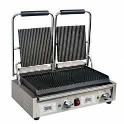 With its rapid heat up and generously-sized cast iron grilling surface, the Buffalo contact grill is a powerful and reliable addition to the professional kitchen. Perfectly designed to produce great tasting food, the grill features independent accurate temperature controls and digital timers, so you’ll always get consistent results, whether you’re making traditional breakfasts or takeaway snacks.
