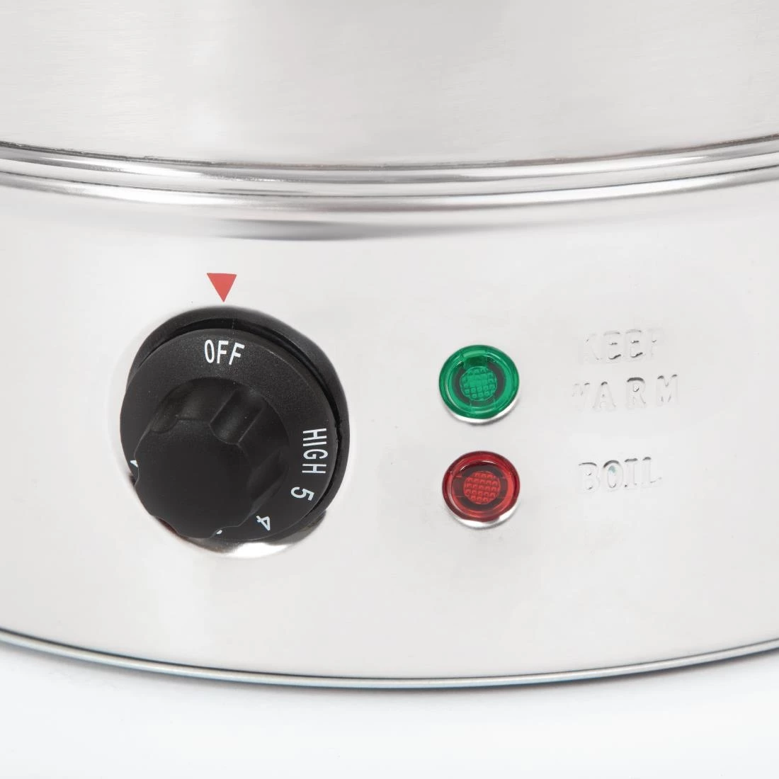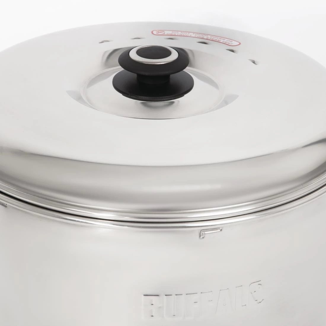 As a manual fill machine, the Buffalo is incredibly easy to set up and use – simply position, fill, plug in and switch on – there’s no need for plumbing into a mains water connection – and due to the huge capacity, refills are kept to a minimum. Cleaning is easy too, as the strong stainless steel construction is wipe-clean whilst the concealed element is much easier to descale in comparison to traditional exposed water boiler elements. And thanks to the variable temperature control, the Buffalo commercial boiler can be used to keep water below boiling if required – perfect for specialist drinks. Fitted with secure durable handles and non-drip tap.