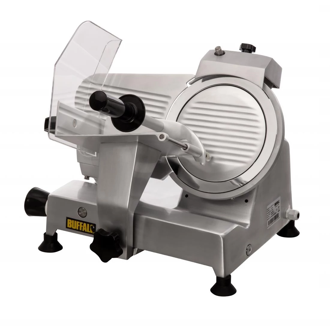 Save time and reduce waste with the powerful and reliable Buffalo commercial meat slicer. With its large 220mm blade with integral sharpener, you can easily and precisely slice large quantities of beef, ham, poultry or vegetables with the minimum of mess and fuss.