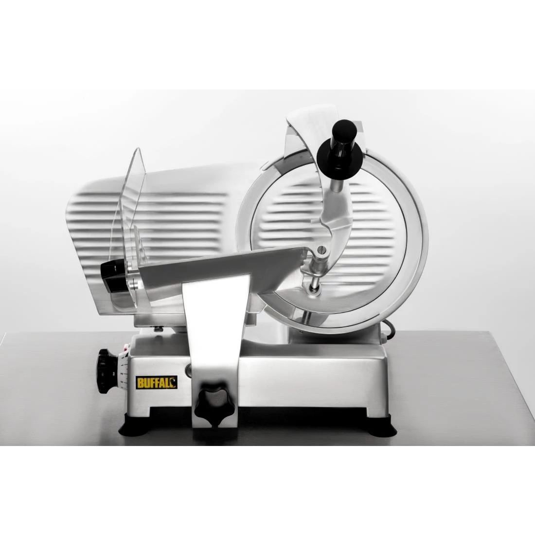 Save time and reduce waste with the powerful and reliable Buffalo commercial meat slicer. With its large 300mm blade with integral sharpener, you can easily and precisely slice large quantities of beef, ham, poultry or vegetables with the minimum of mess and fuss.