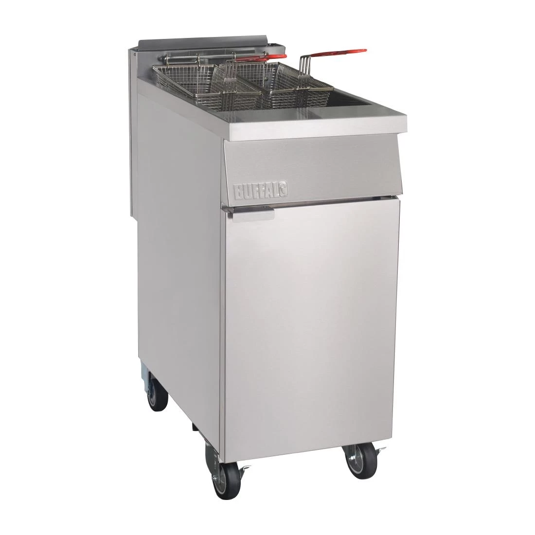 If you’re looking for reliabiity and great cooking capacity, the Buffalo freestanding fryer is a great choice. With a large 18 litre tank and two separate frying baskets, the fryer offers plenty of room and flexibility for your most popular fried foods. Whether it’s chips, chicken, seafood or vegetables, the Buffalo gives you the frying performance you need to achieve perfect results.