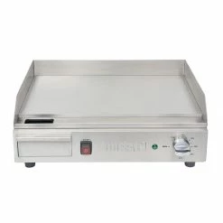 Everyday operation is simple – the front-mounted dial temperature control provides accurate temperature regulation, whilst the powerful element ensures a rapid heat-up and even heat across the whole griddle surface – that’s fewer hot-spots which could potentially burn food. And during cooking, the front grease collection channel and removable drawer helps reduce the amount of time spent cleaning. A fantastic professional griddle for B&Bs, cafes and mobile caterers.