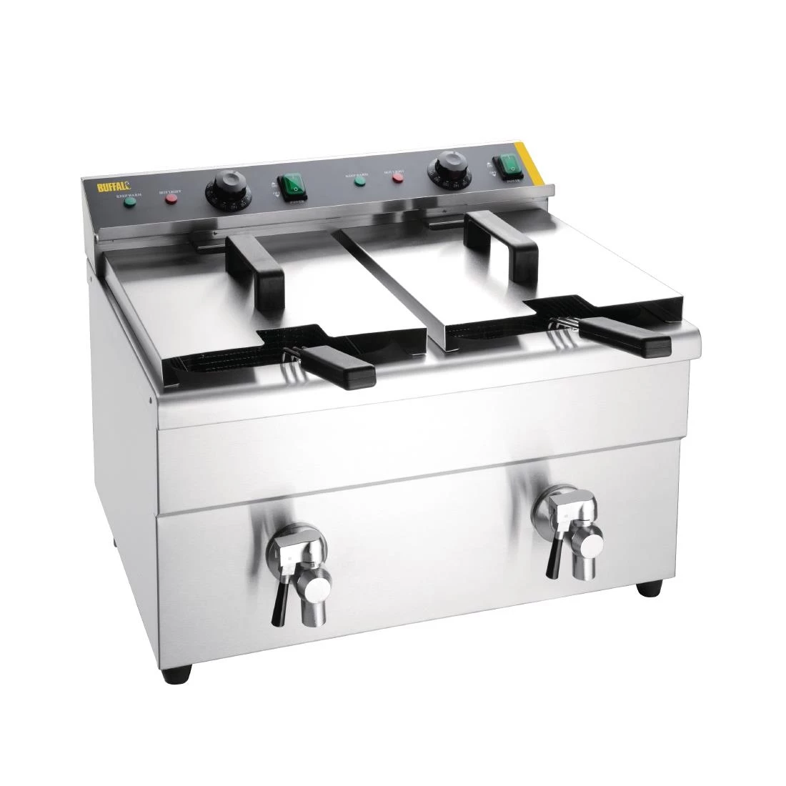 Whether you’re frying fish, chips, doughnuts or chicken, the Buffalo fryer offers an impressive output and a generous 7.5Ltr capacity per tank that keeps up with demand – all whilst using less energy than traditional deep fryers,as only a standard 3-pin plug is required to power this. With no exposed elements and a handy drain tap, the Buffalo induction fryer is fast and easy to clean.