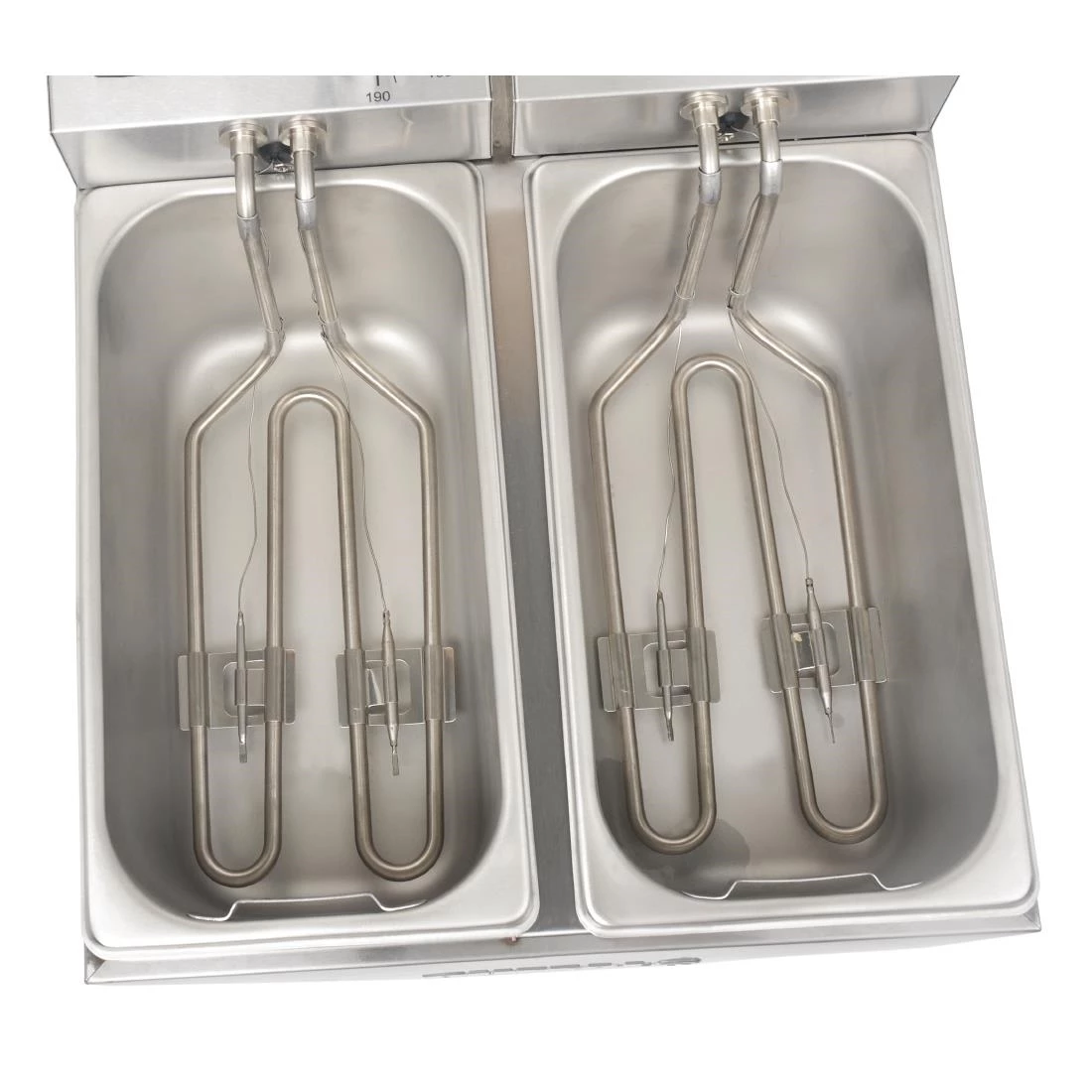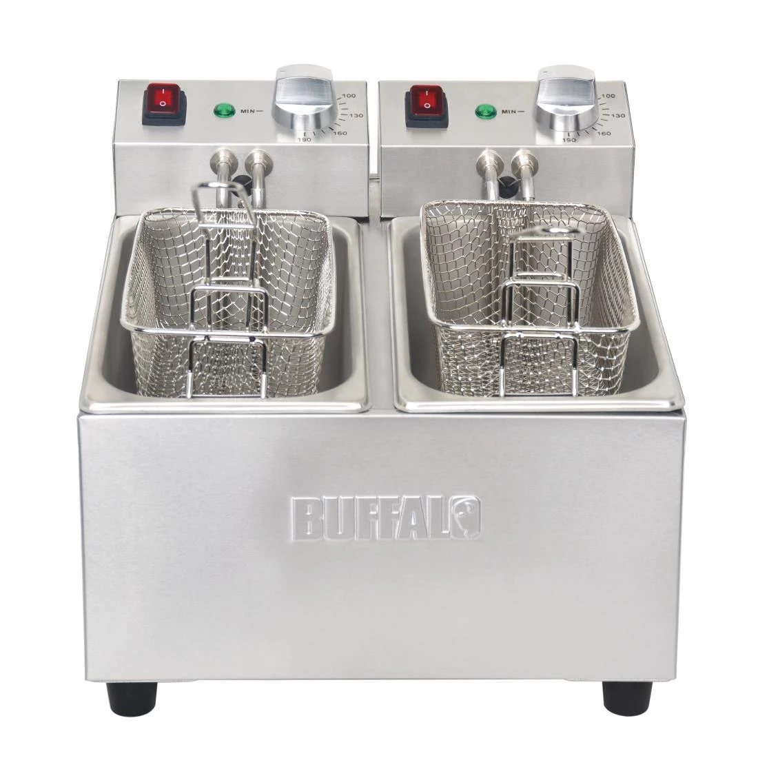 Whether you’re frying fish, chips, chicken or doughnuts, the Buffalo countertop fryer is an excellent choice for smaller scale cooking. With twin independently controlled tanks and two strong frying baskets, the Buffalo makes it easy to cook whatever you need with the minimum of fuss. During quieter hours, you can operate just a single tank to reduce running costs. A superb option for adding flexibility to your kitchen.