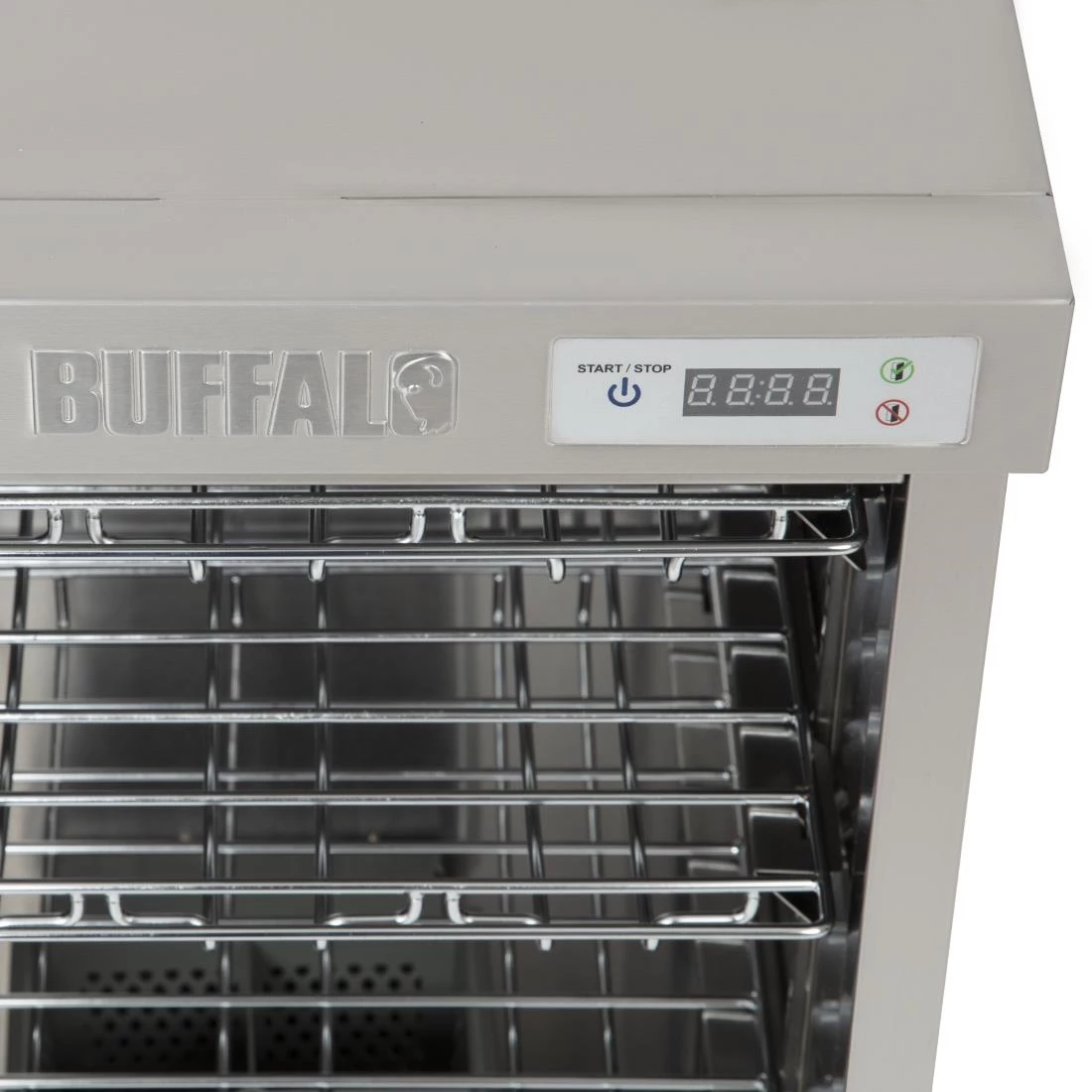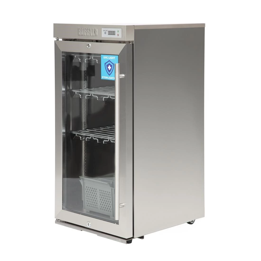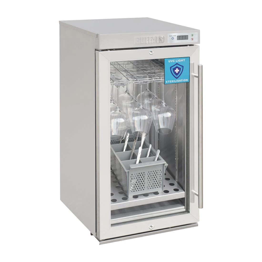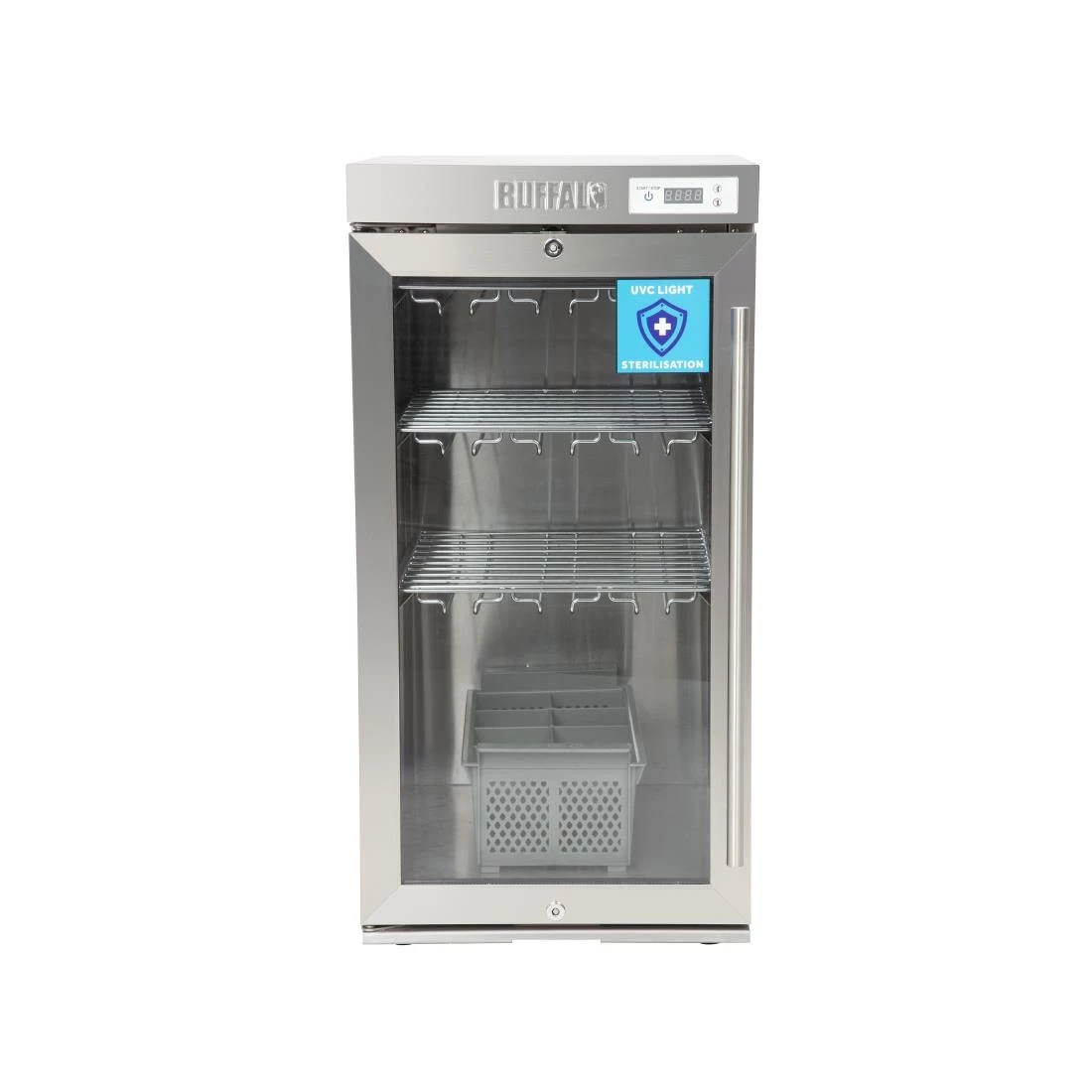 The Buffalo UVC cabinet is incredibly easy to use – simply place the items inside using the included glass racks or cutlery basket and set the timer. The unit then effectively sterilises the contents within 30 minutes, making them ready to use again quickly. No mess, no fuss. Just scientifically proven technology, used by the healthcare sector for years.