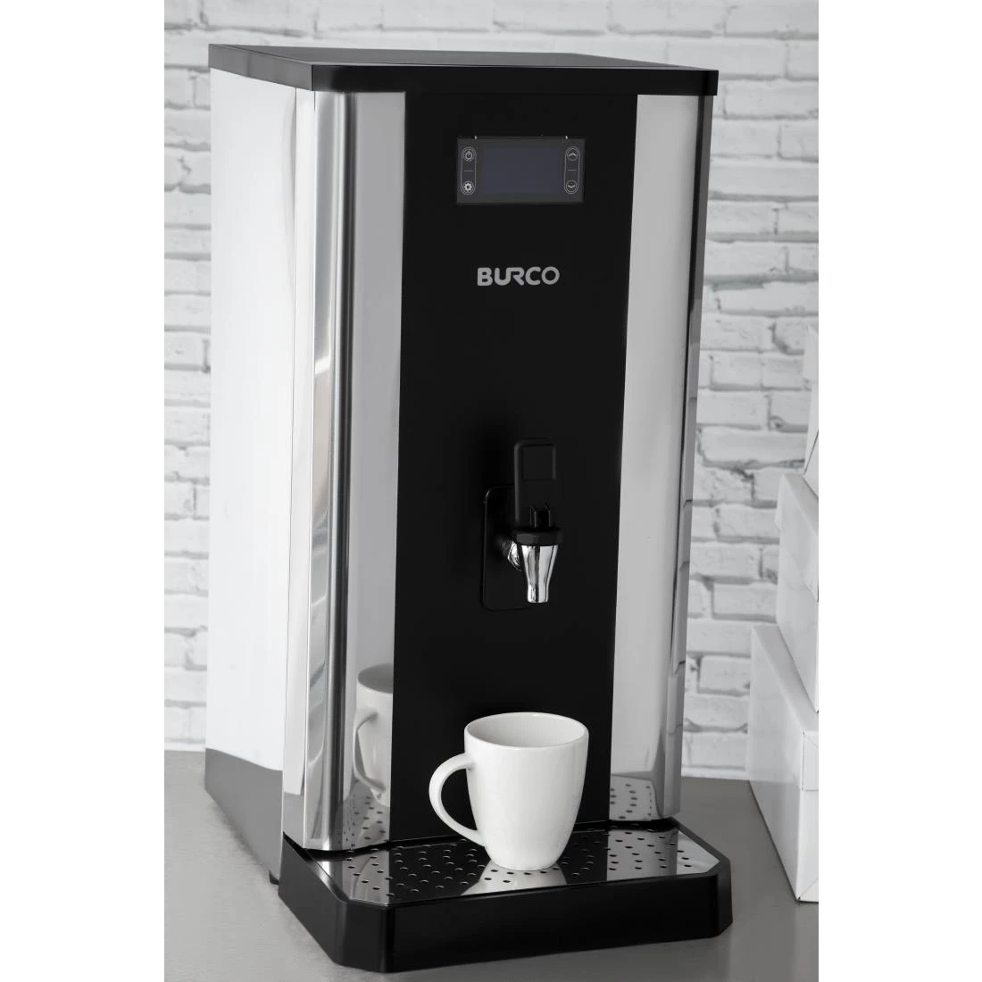 The Burco is also designed for efficiency. With a built-in eco mode, the Burco can significantly reduce its running costs by intelligently adjusting output during quieter hours. Cleaning is easy too, thanks to strong stainless steel construction, easy-access internals and the integrated drip tray, which can be attached directly to the drain if required.