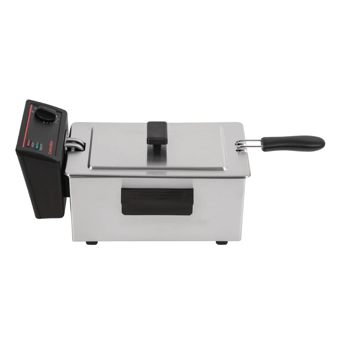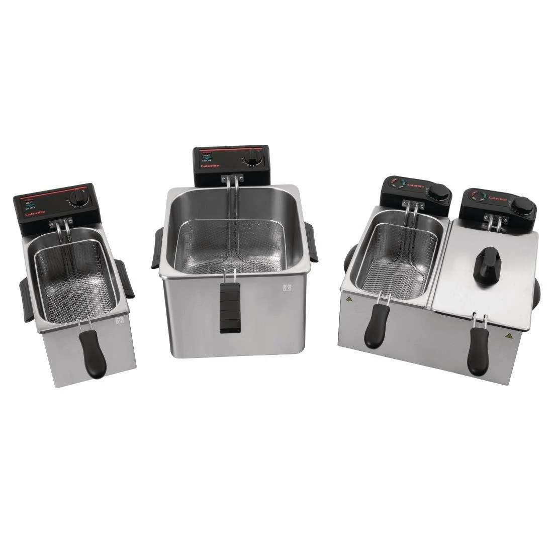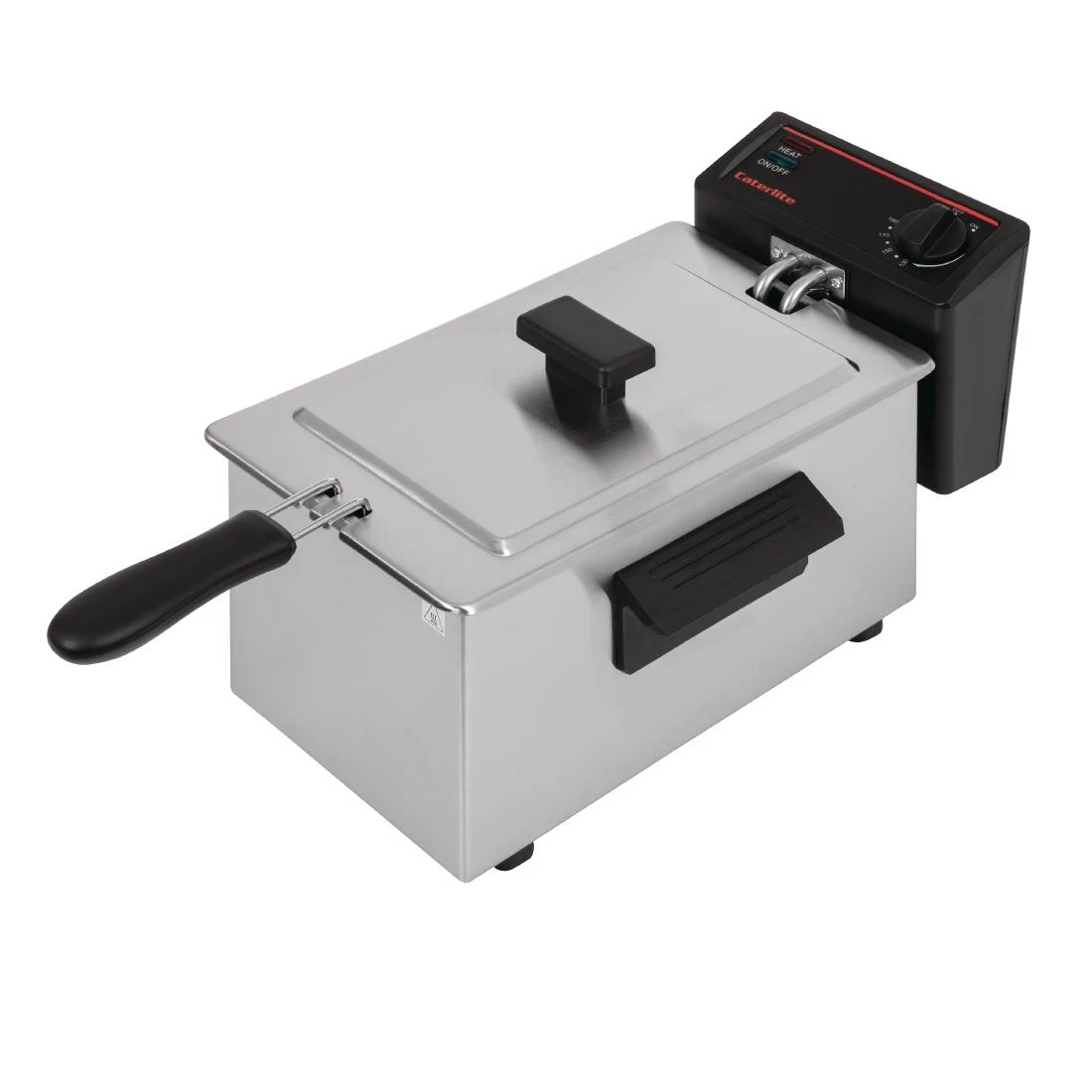 The Caterlite countertop fryer is a fantastic light duty solution for quickly cooking fried favourites such as fish, chips, doughnuts and chicken. Incredibly user-friendly and highly compact, this lightweight fryer can be set up wherever it’s needed – whether that’s on a market stall, event, demo cooking or even the home. It’s especially good if you want to keep certain foods away from your main fryer, preventing cross-contamination of flavours or allergens.