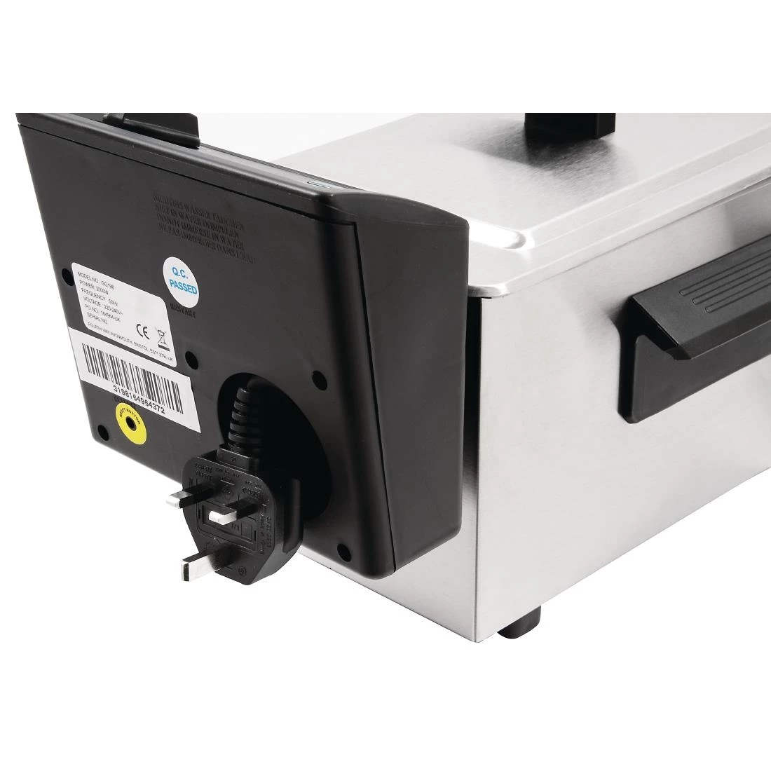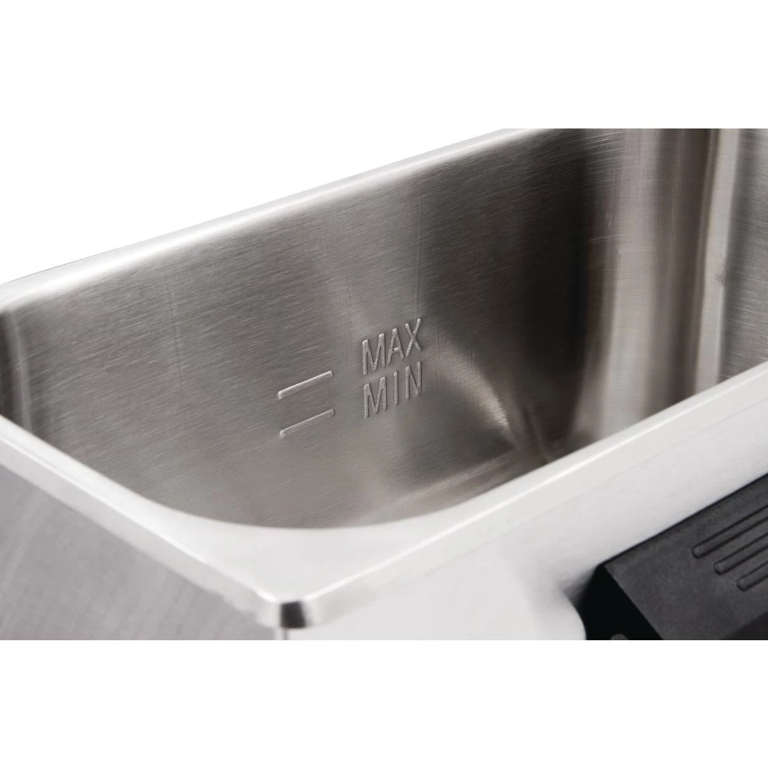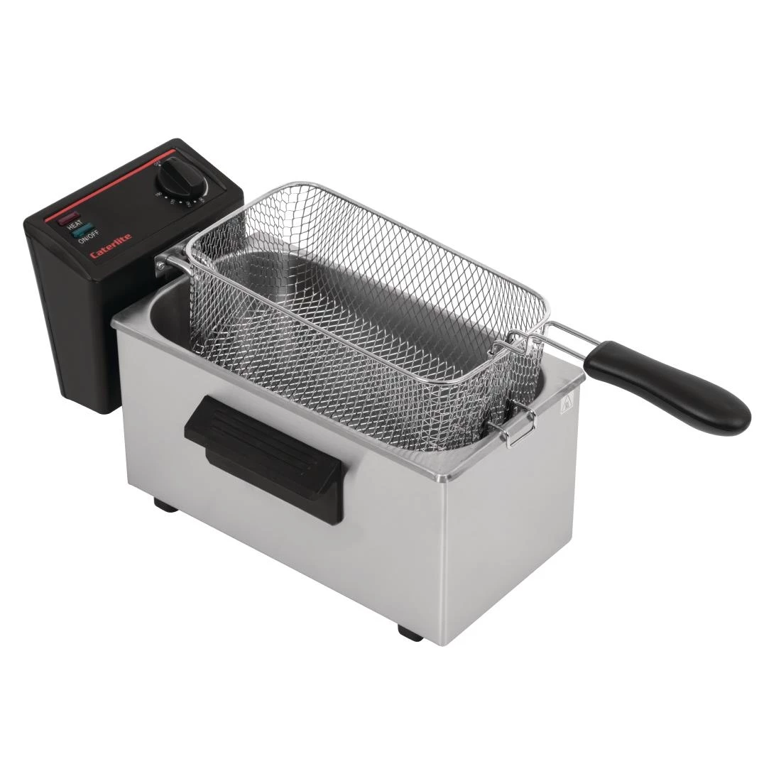 With a generous 3.5Ltr oil capacity alongside an effective 2kW cooking element, the Caterlite provides a generous frying output for its size. And thanks to simple dial controls, it’s easy to achieve superb frying results – just plug in and set the temperature. The sturdy non-slip feet and basket handle ensure safe operation, even at maximum temperature.