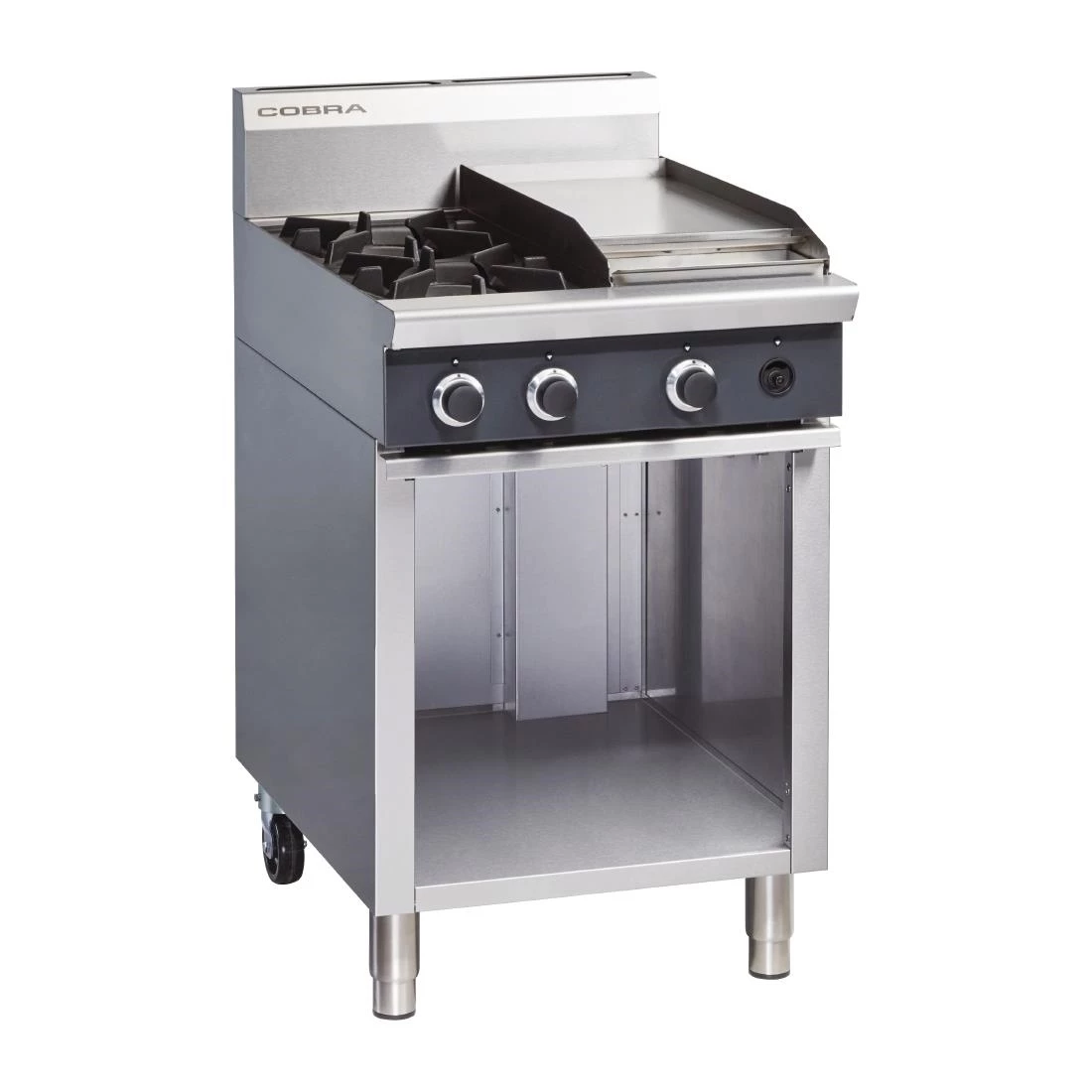 - 2 burner cooktop with 300mm griddle on open cabinet base