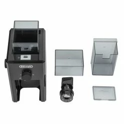 - Dual safe system shuts off the grinding wheels if either the ground coffee or the bean container is removed