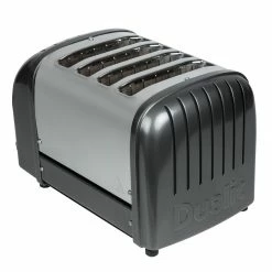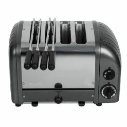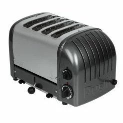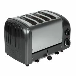 Highly durable, practical and reliable, the Dualit 2 x 2 Combi Vario 4 Slice Toaster in Metallic Charcoal colour offers the convenience and flexibility of both standard and sandwich toasters in a single unit. The toaster features extra wide 28mm slots to accommodate a thicker cut of bread and individual controls for each slot, saving money and energy in heating the slots only when required. It is easy to clean thanks to its hygienic stainless steel cover which, alongside the patented ProHeat elements, is replaceable, making the Dualit toaster incredibly long-lasting. Supplied with two sandwich cages.