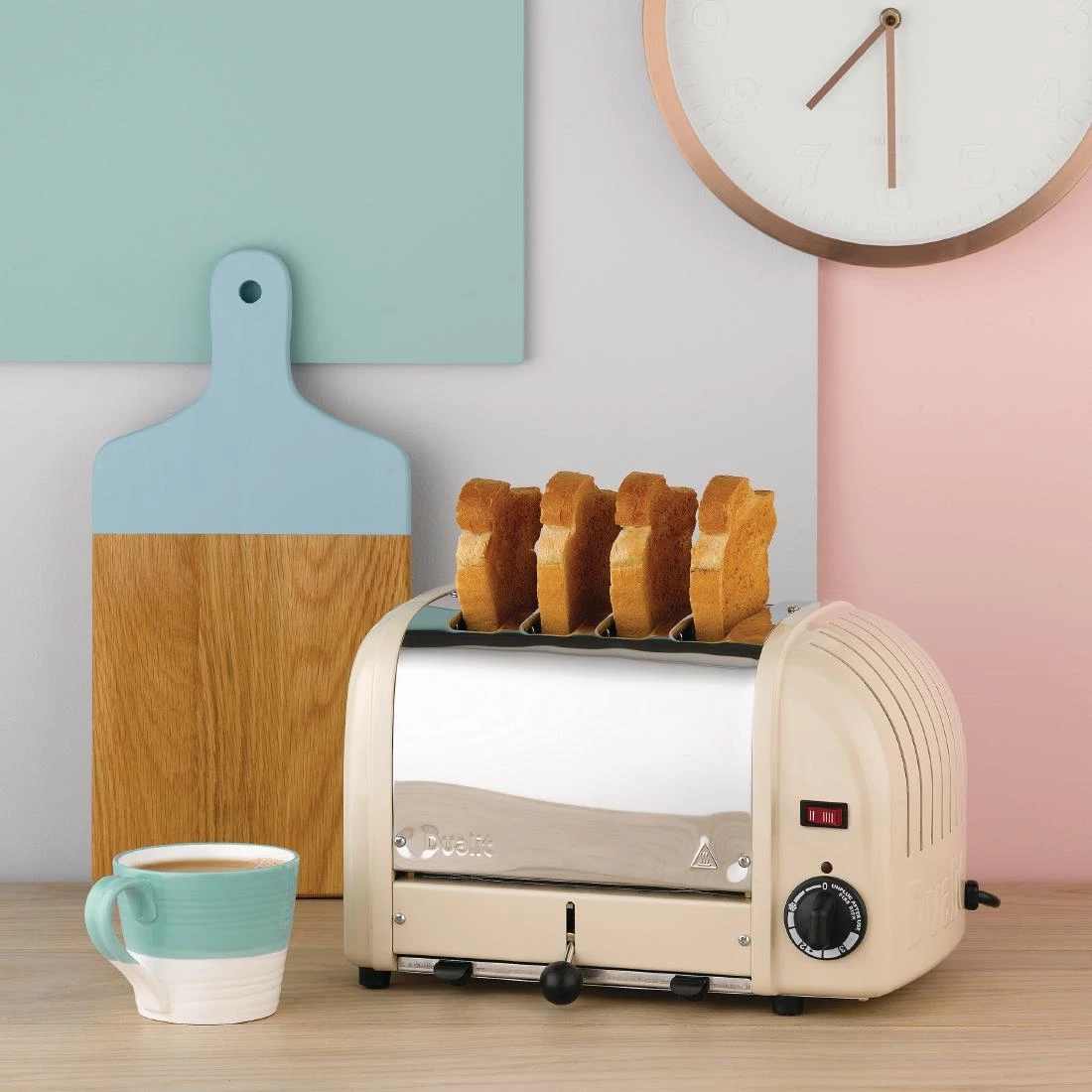 Designed to withstand the rigours of continual use within a busy commercial kitchen, the Dualit 4 Slice Vario Toaster Utility Cream features award-winning ProHeat elements and extra wide 28mm slots. These slots mean it can accommodate the thickest breads, teacakes and even sandwiches (using a Dualit sandwich cage, available separately). A mechanical timer allows precise control of toasting and a manually operated ejector lever keeps items warm until required, while a high lift mechanism allows easy and safe removal of small items. This Dualit toaster also features a selector switch meaning only the slots needed are heated, saving energy in quieter periods and allowing for consecutive toasting.