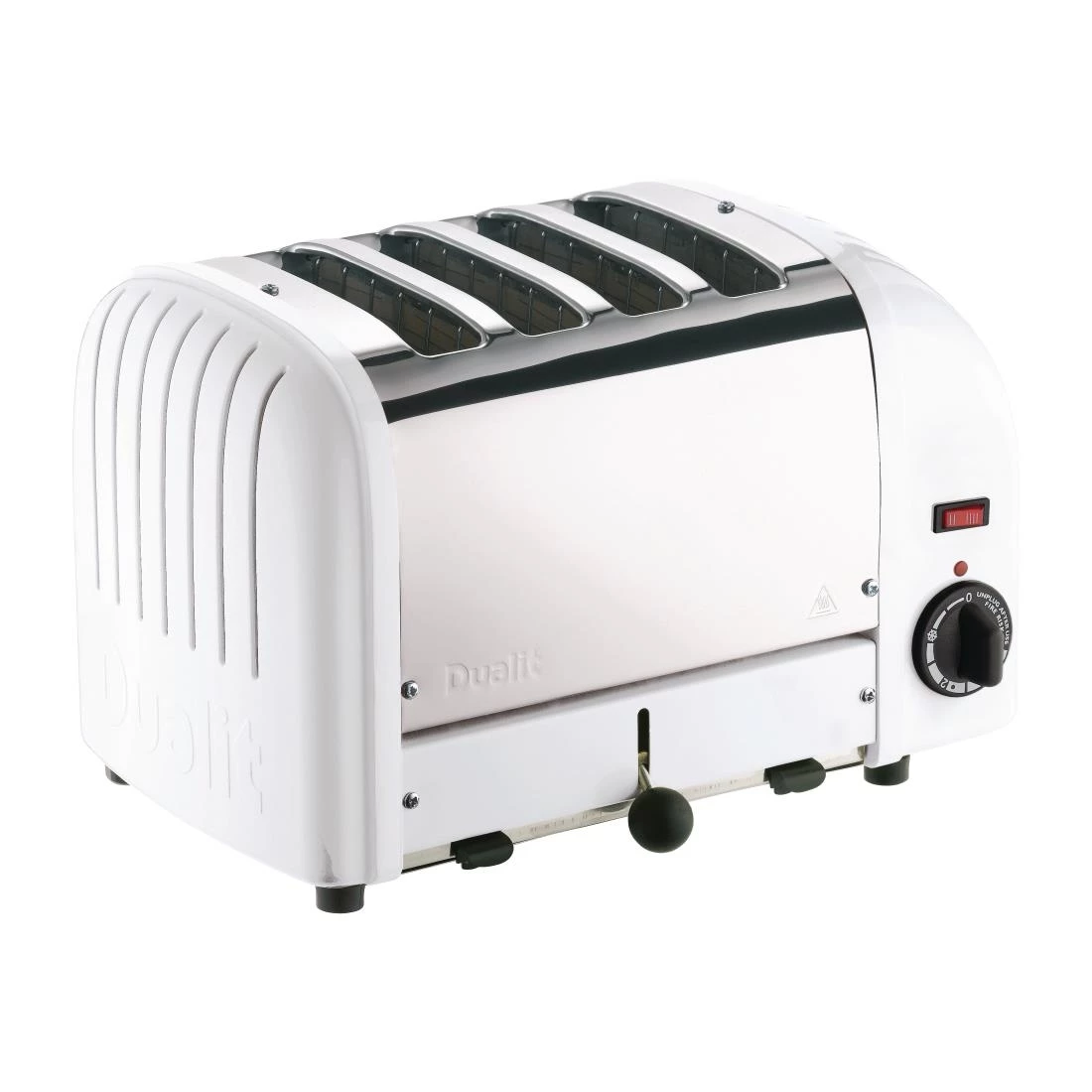 The highly stylish Dualit Bread Toaster 4 Slice White is specifically and innovatively designed for commercial and professional use. For a 4 slice toasters, it is exceptionally versatile and easy to use thanks to its variety of features. These include a selector switch which allows you to use only the slots you need, whilst a simple twist timer ensures bread is browned to perfection. Once toasted, bread is ejected manually by a push down lever, so it is kept warm until needed. The easily replaceable, award winning ProHeat elements ensure your toaster will have a long life and sustained use, making it the ideal choice for a commercial kitchen.