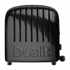 The 60145 Dualit 6-slice Vario toaster in Black is renowned for its durability, performance and iconic design. Incredibly simple to use in any kitchen, the toaster offers six slots of cooking capacity, as well as a handy slot selection switch and browning control. Innovative ProHeat elements provide exceptional browning quality – the entire slice of bread is cooked quickly and evenly. The front-mounted lever allows you to easily lift the bread – perfect for checking the cooking progress or to aid loading/unloading. Cleaning is easy too, thanks to the sleek build and removable crumb tray.