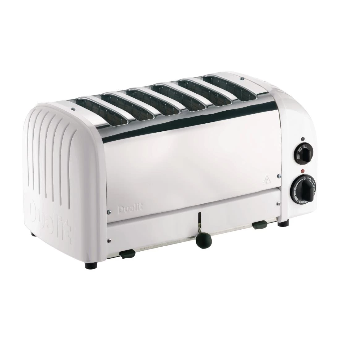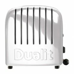 The 60146 Dualit 6-slice Vario toaster in White is highly regarded for its flexibility, reliability and iconic design. Incredibly simple to use yet powerful, the toaster offers six slots of capacity, as well as a handy slot selection switch and browning control. Patented ProHeat elements provide impressive browning quality – the whole slice of bread is cooked quickly and evenly. The front-mounted lever allows you to quickly lift the toast, either to check on the cooking progress or to aid loading/unloading. Cleaning is simple too, thanks to the sleek build and removable crumb tray.