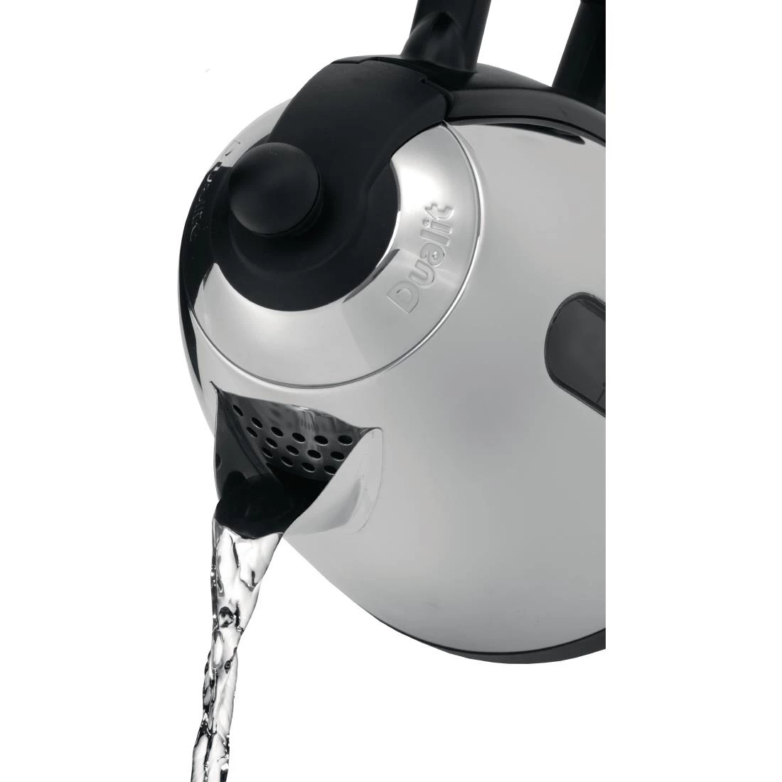 The compact, award winning, 1 litre Dualit Jug Kettle in black and silver has been lovingly designed for style, performance and ease of use. With attractive stainless steel construction throughout, the kettle demonstrates strength and durability, whilst the lid and ergonomic handle include heatproof areas, preventing burns and making the kettle incredibly user-friendly.
