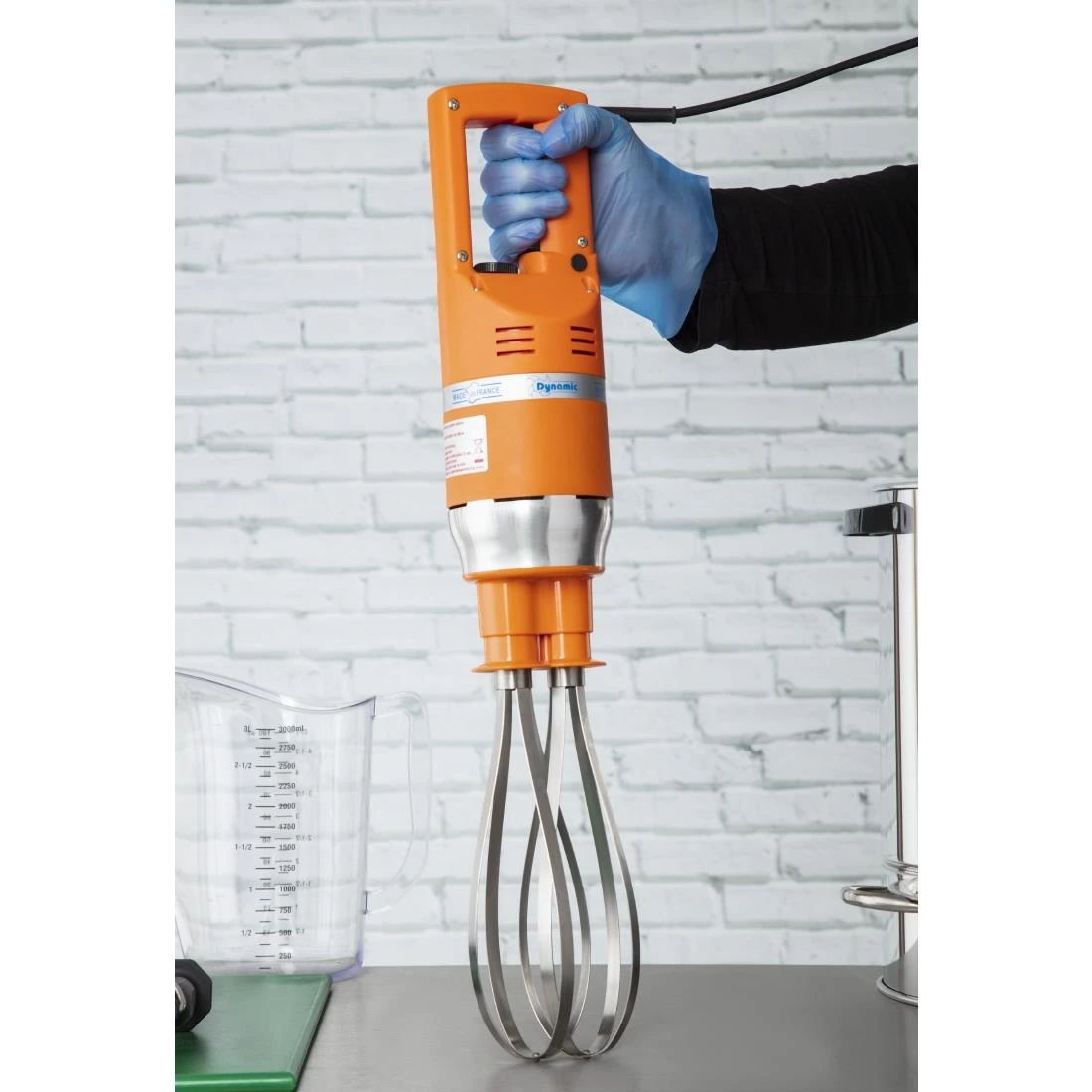 The whisk is also designed for user comfort and safety. With the inclusion of the safety start button, the Dynamic will only run when you want it to. And for longer preparations, the continuous run function can keep the whisk running until the mix is completed.