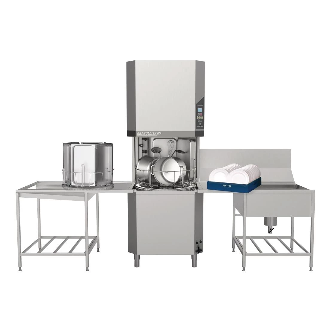 Our unique Granule Combi® model combines our award-winning efficient Granule technology for potwashing with traditional crockery and cutlery washing. Used as a 3-in-1* solution in smaller kitchens or as a powerful potwashing machine with crockery and cutlery wash support in medium-sized to large kitchens.