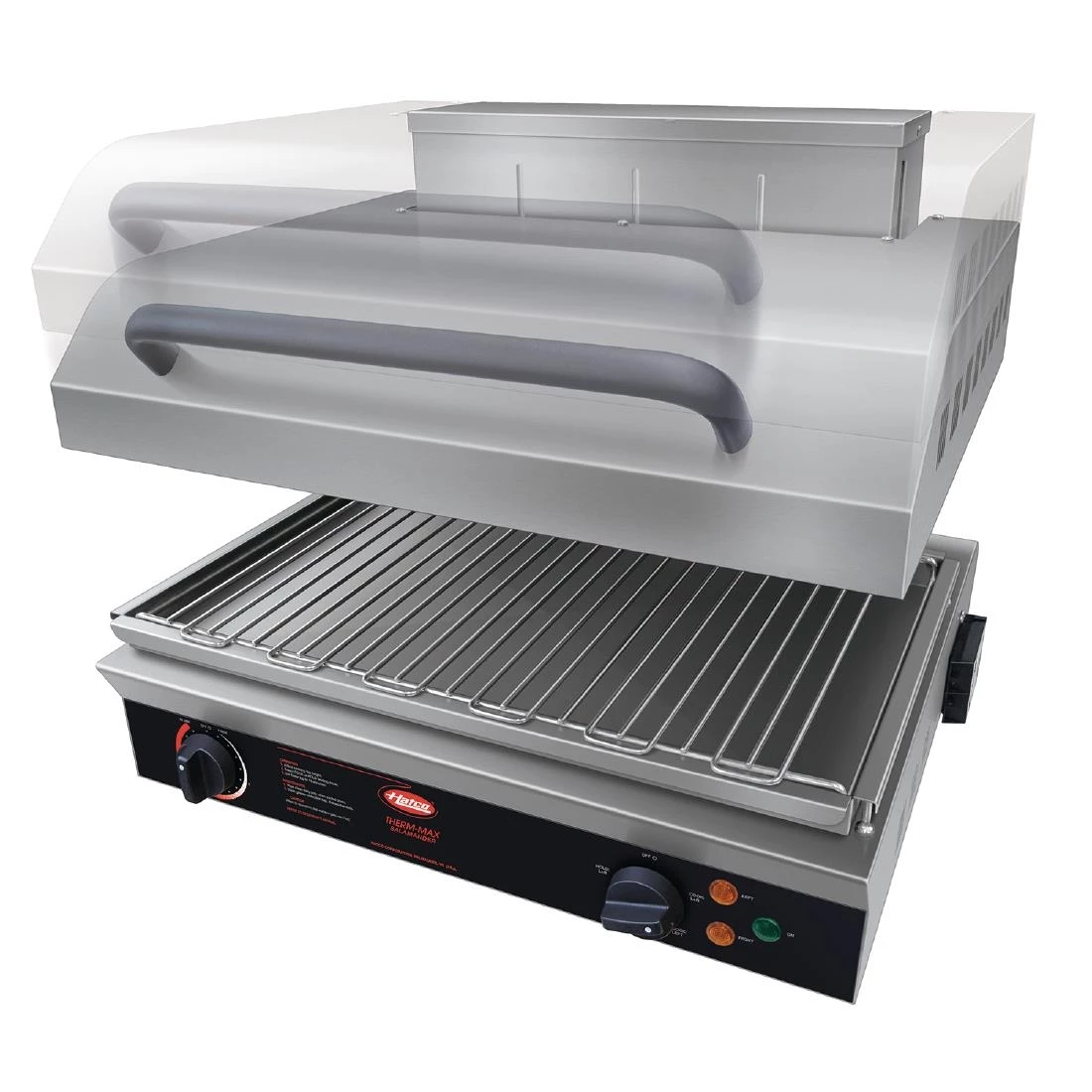 The Hatco Therm-Max ®rise and fall electric salamander grill has been specifically designed to add a versatile cooking option in the busy commercial kitchen. Able to reach temperature within 8 seconds, food can be cooked quickly and conveniently. The Hatco salamander is fitted with two separate elements, allowing precise cooking and reduced running costs. Ideal for takeaways, restaurants, hotels and cafes.