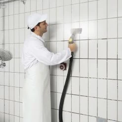 Whether its being used in kitchens, hospitals or industrial buildings, the Karcher SGV 8/5 is a truly powerful and effective cleaning machine which quickly cleans and vacuums surfaces, leaving them hygienic and ready to use again. Even built-in grease and dirt is no match for the Karcher, as the innovative 8 bar steam generation quickly breaks down the worst grime and quickly vacuums up any residue.