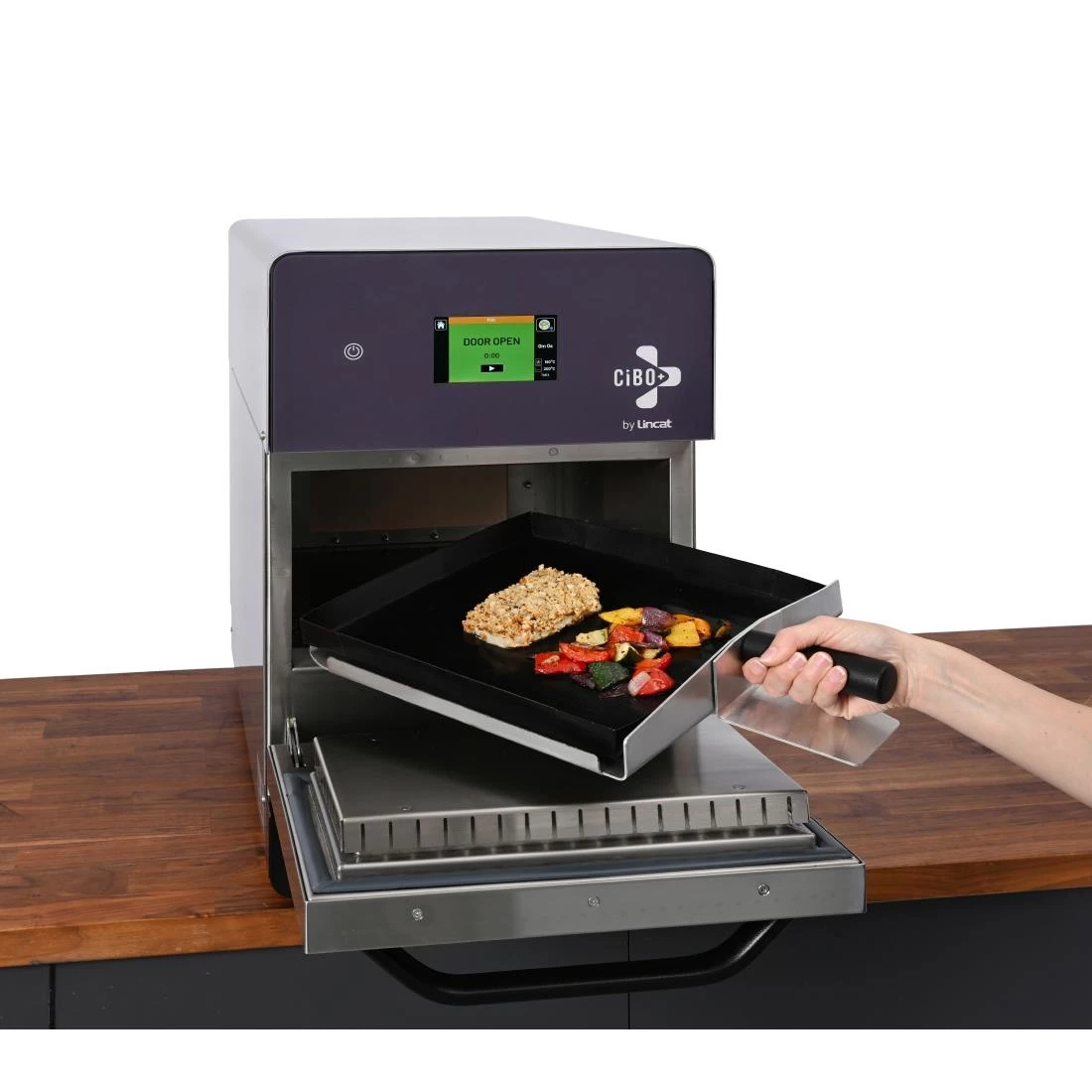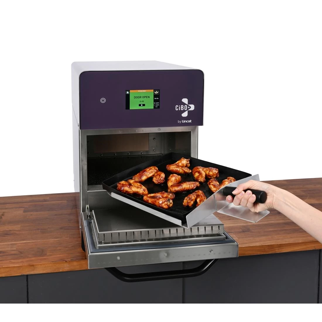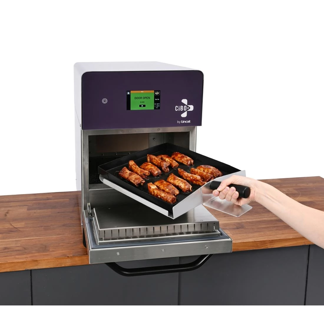 Efficient. Effective. Energy-saving. The CiBO+, high-speed oven in purple is built to excel. Using Tri-Heat Technology, the oven cooks with a mixture of microwave, TurboAir and ContactBase heating to provide cooking results up to 12x faster than conventional methods. This intelligent design not only means that food is cooked quicker, but has improved consistency and maintains a high level of food quality.