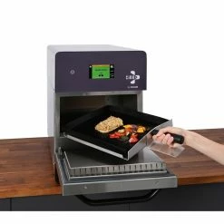 - High-speed technology cooks food up to 12x faster than conventional methods