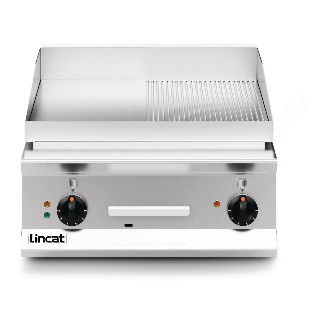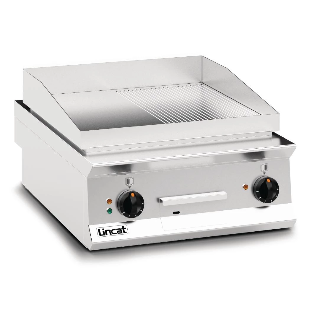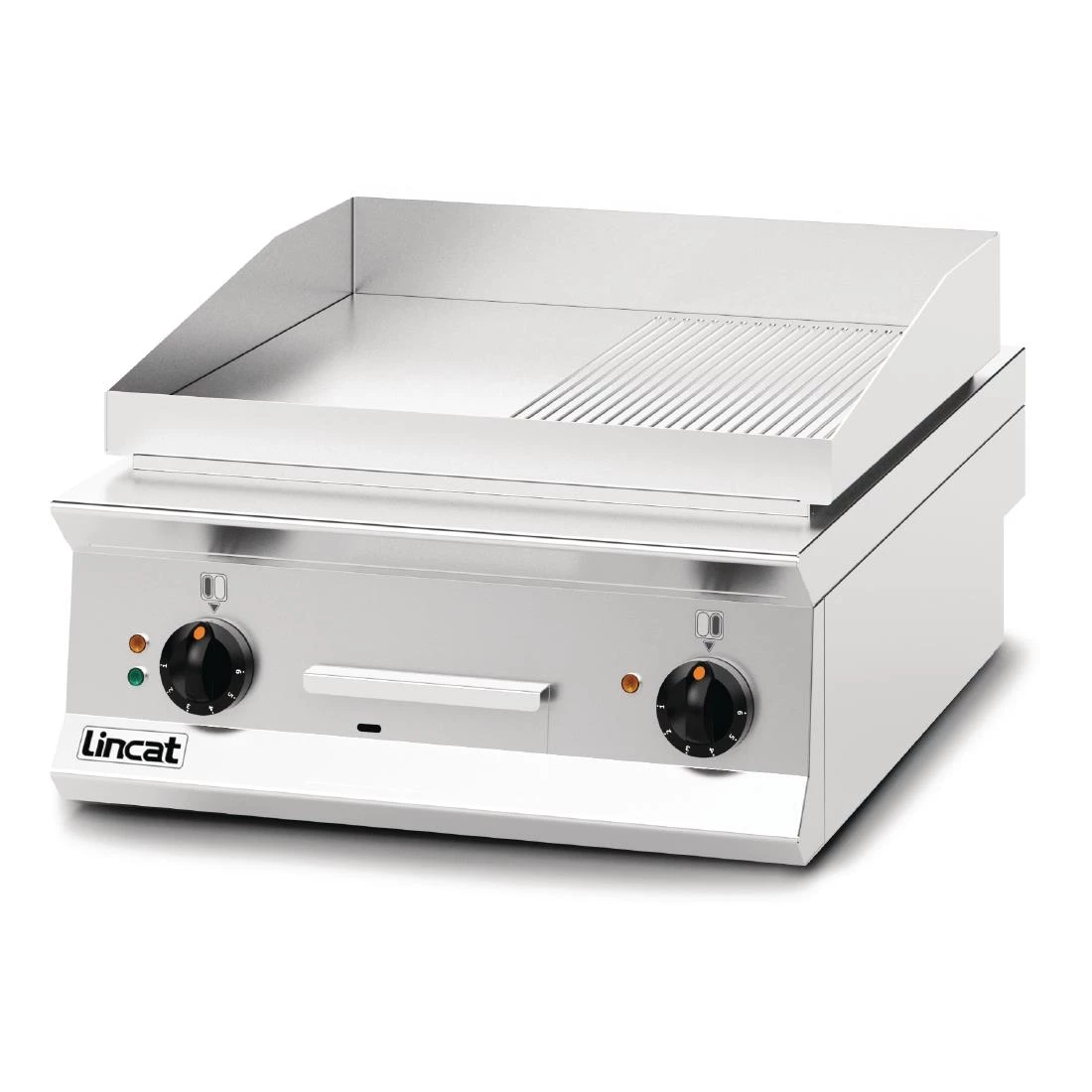 Keep multiple options open with this Lincat Opus 800 Stainless Steel Griddle, equipped with independent heat zones, one a half ribbed plate to give meals that attractive ribbed branding. Either zone can be individually controlled to match rises or falls in customer demand, whilst the large circular draining hole and debris draw remove make the cleaning of the unit easier.
