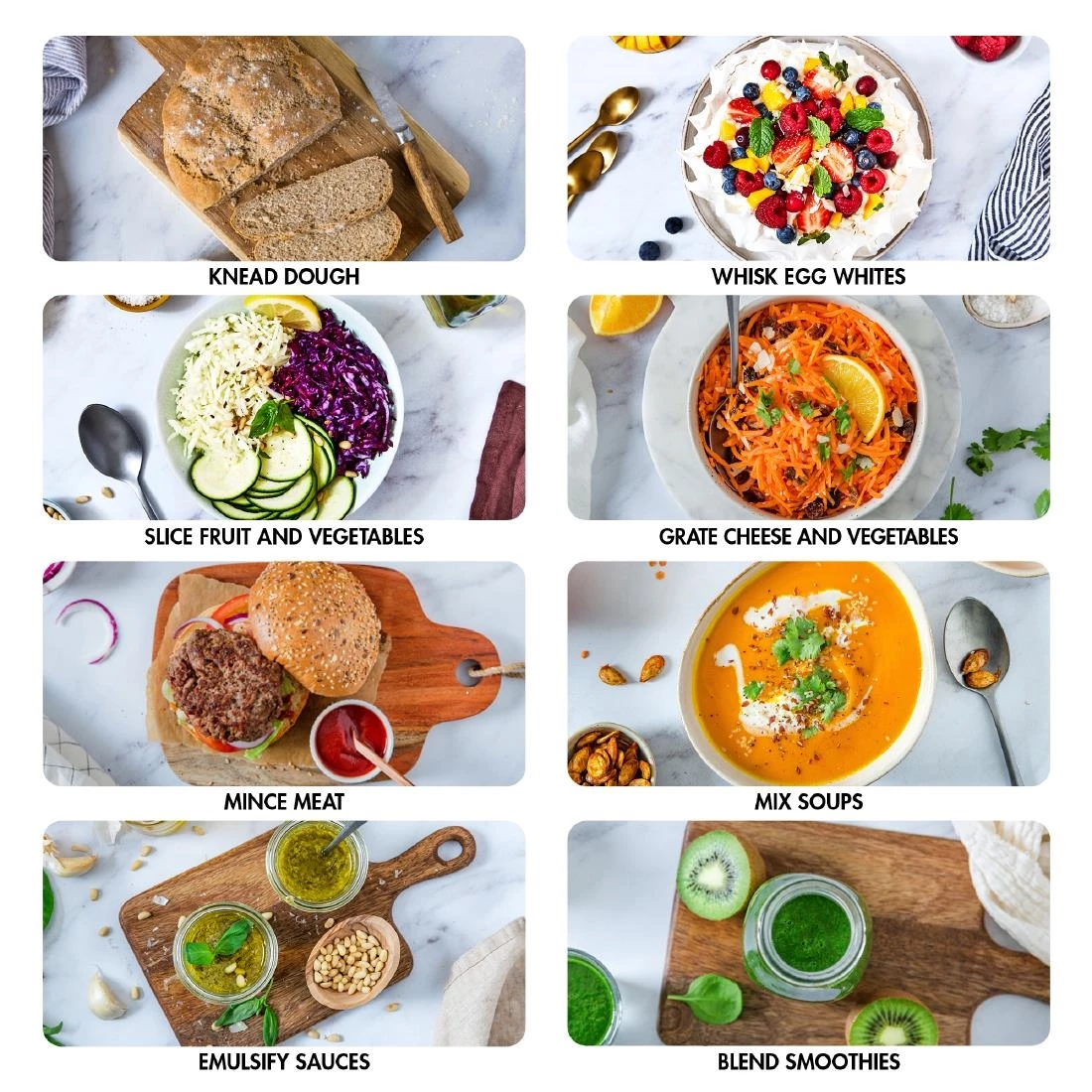 - 3 food processors in 1, including mini bowl with mini blade for processing small quantities