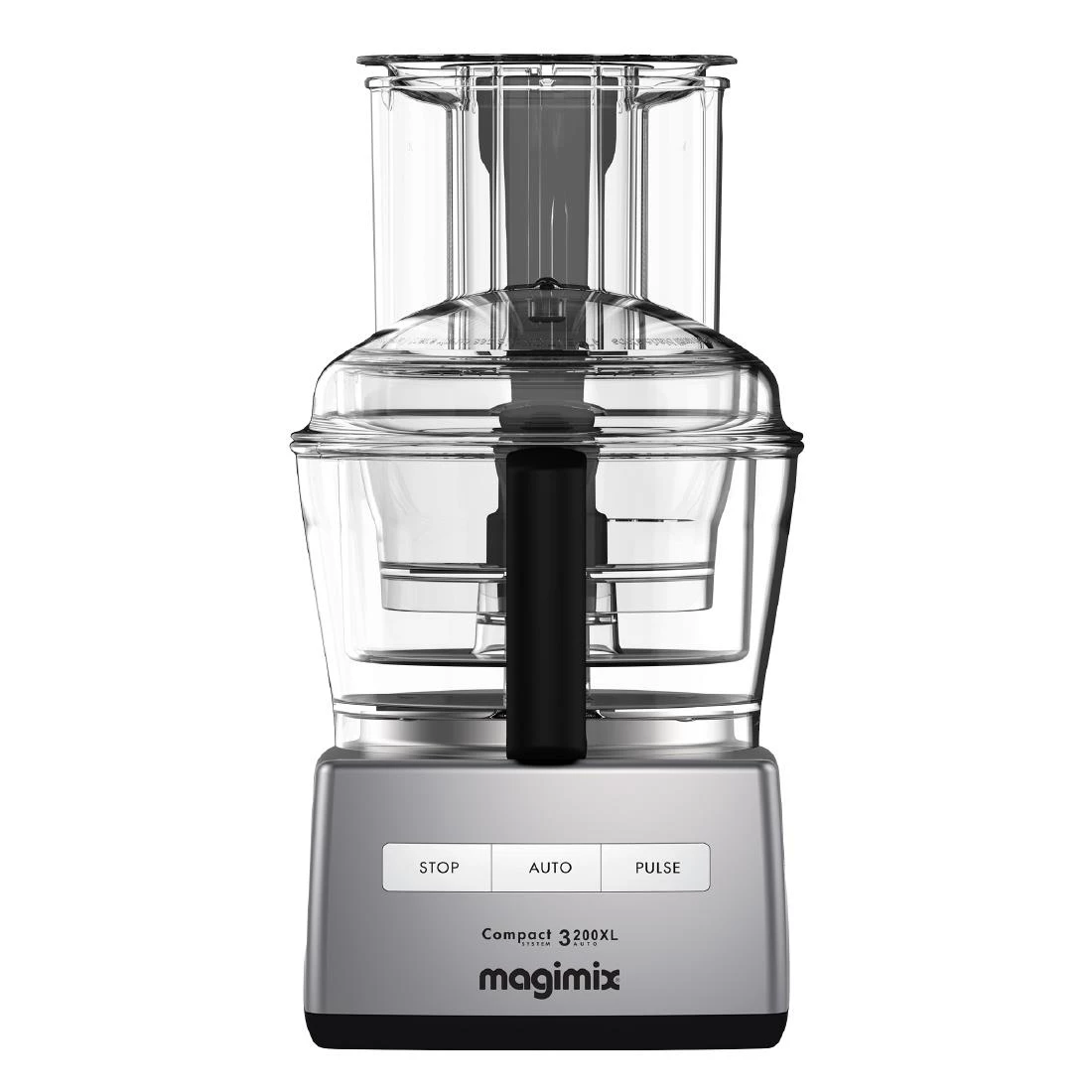 The Magimix 3200XL Compact System food processor in Satin colour is a great solution for the family home kitchen. Truly multifunctional, the 3200XL is a 6 in 1 solution, offering the versatility to knead, blend, chop and shred a wide variety of foods, freeing up valuable worktop space. With its minimal footprint for such a powerful and versatile machine, the 3200XL can easily knead a standard sized loaf (600g), grate up to 800g vegetables or blend up to 1 Litre of soup in the main bowl.