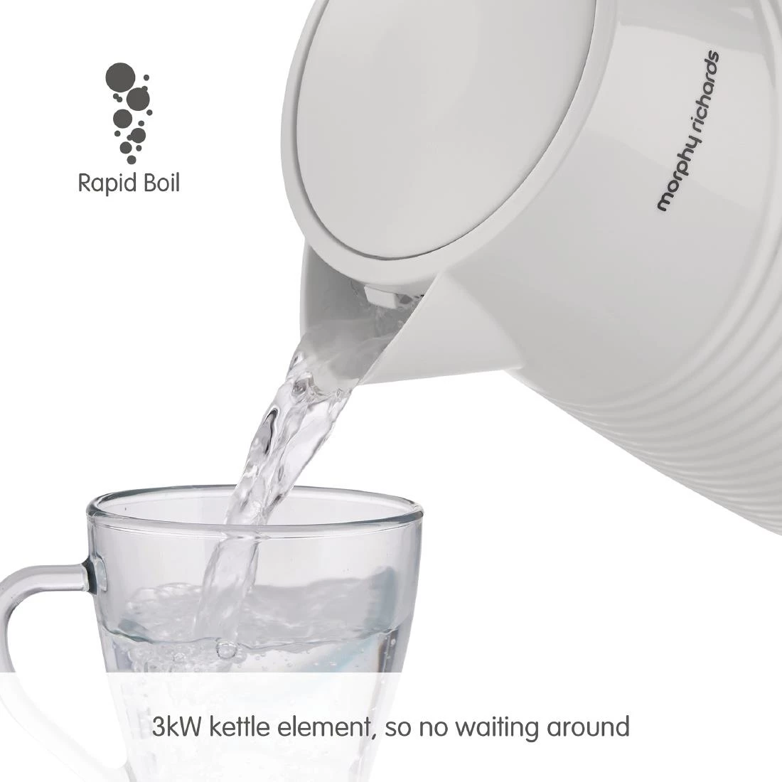 Super stylish and powerful, the Morphy Richards 108267 Dune jug kettle makes it easy to pour the perfect cuppa. With a 1.5 litre capacity and rapid boil technology, the kettle quickly brings water to the boil, whilst the handy 360° base helps you safely grab and replace the kettle from any angle. The cleverly-designed handle and spout ensure effortless pouring too, making the Dune great for any tea break.