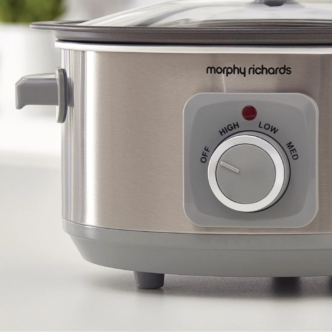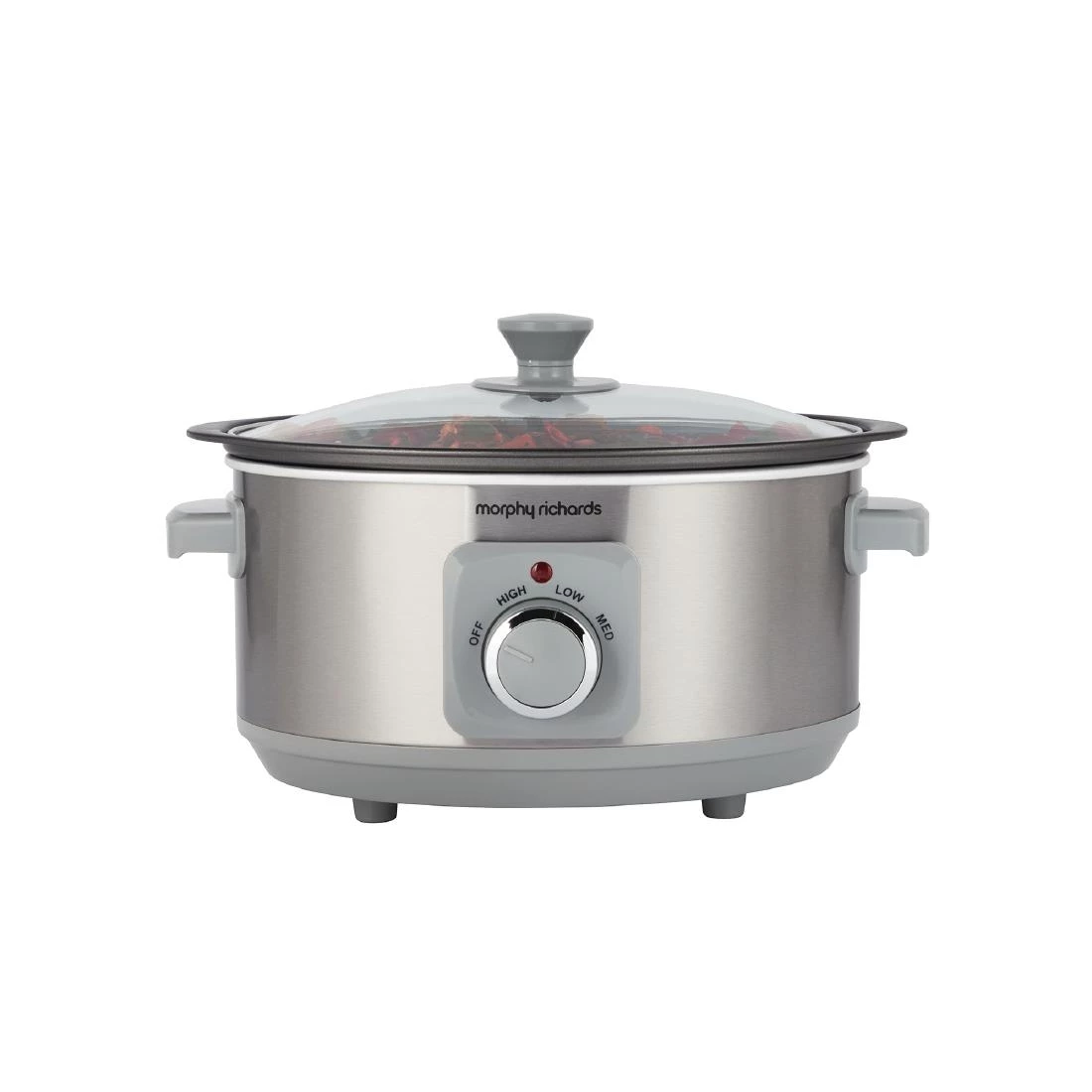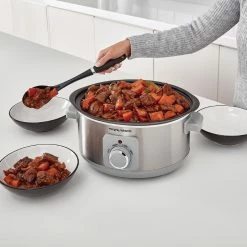 Easily create healthy, hearty home meals with the Morphy Richards Sear & Stew slow cooker. With its large 3.5 Ltr capacity, there’s plenty of room for family favourites, such as casserole, curry or chilli. Thanks to its clever design, the removable aluminium cooking pot is hob proof, so you can quickly fry or sear meats before the slow cooking process, retaining all the meat juices in the pot and delivering deliciously flavourful results. And as the pot it removable, you can transfer it straight to the table, so the whole family can dig in straight away! A fantastic energy-saving slow cooker for the home kitchen. Supplied with recipe book as standard.