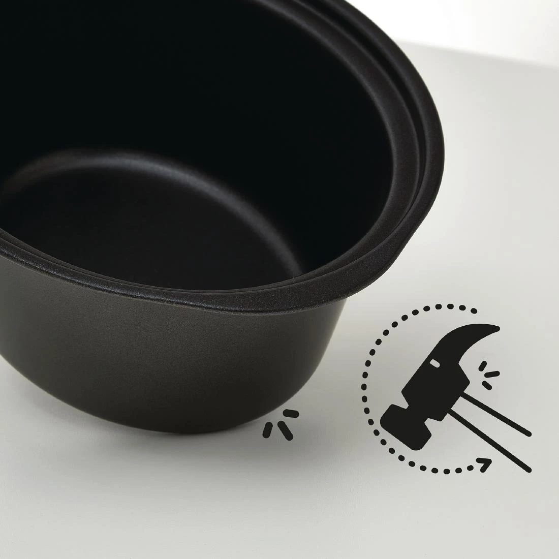 - Shatter resistant cooking pot – less likely to break if dropped or knocked