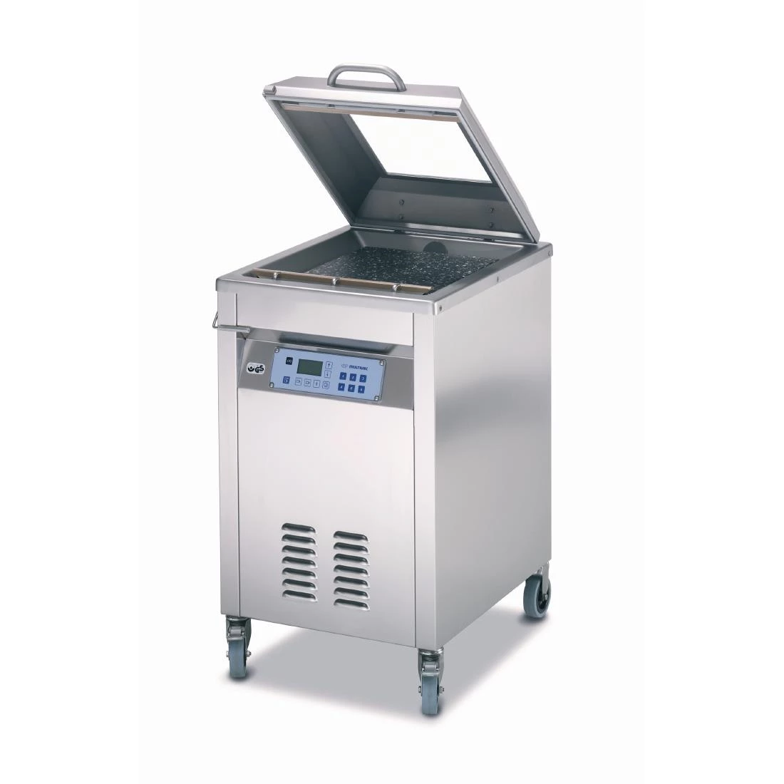 The freestanding C300 Multivac chamber vacuum packer is a fast, powerful food grade commercial vacuum packing machine designed for bulky foods such as large cuts of meat. Perfect for use alongside waterbaths and sous vide machines, the Multivac C300 provides an excellent seal, creating a double seam for additional security against contamination as well as preventing spillage in the cavity. Consistent results are achieved easily thanks to the six adjustable programme settings, whilst the stainless steel construction and castors ensure cleaning is simple and fuss-free.