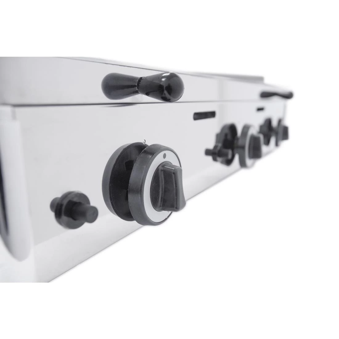 Whether you’re cooking up a delicious full English breakfast, or simply offering takeaway snacks like burgers or hot dog sausages, the Parry PGF gas griddle is an excellent choice for the professional. With three independently controlled burners, you can quickly adjust the temperature into zones across the generously-sized 783mm wide cooking plate, so you’ve got all the precision you need to cook numerous foods, all at the same time. Cleaning is easy too, thanks to the removable drip tray and smooth stainless steel design. A fantastic UK-made commercial gas griddle.