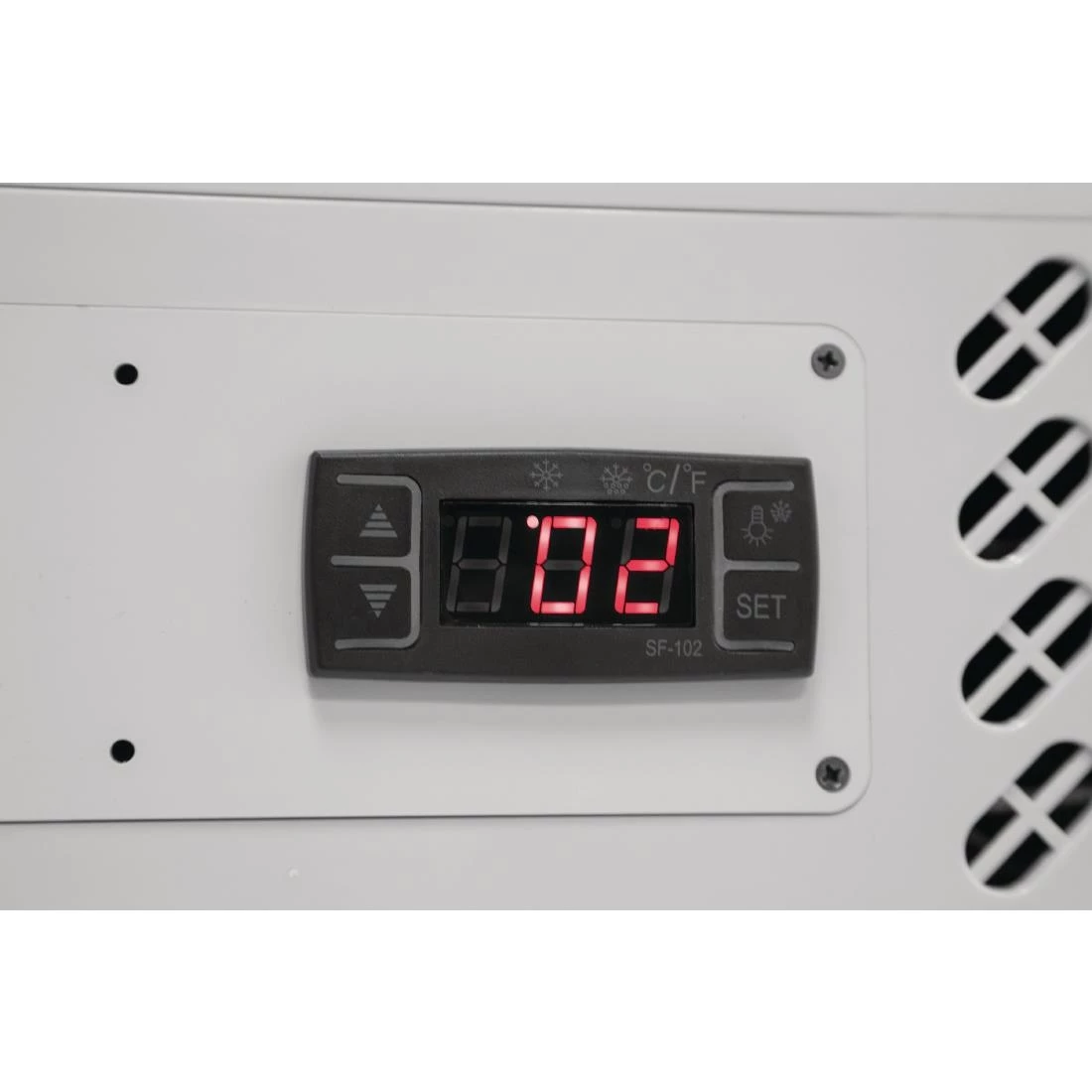 The temperature range of the Polar C-Series Countertop Food Display Fridge is 2°C to 12°C and can be maintained and monitored through digital temperature controls. These temperatures can then be maintained in ambient temperatures from 16 degrees centigrade to 32°C.