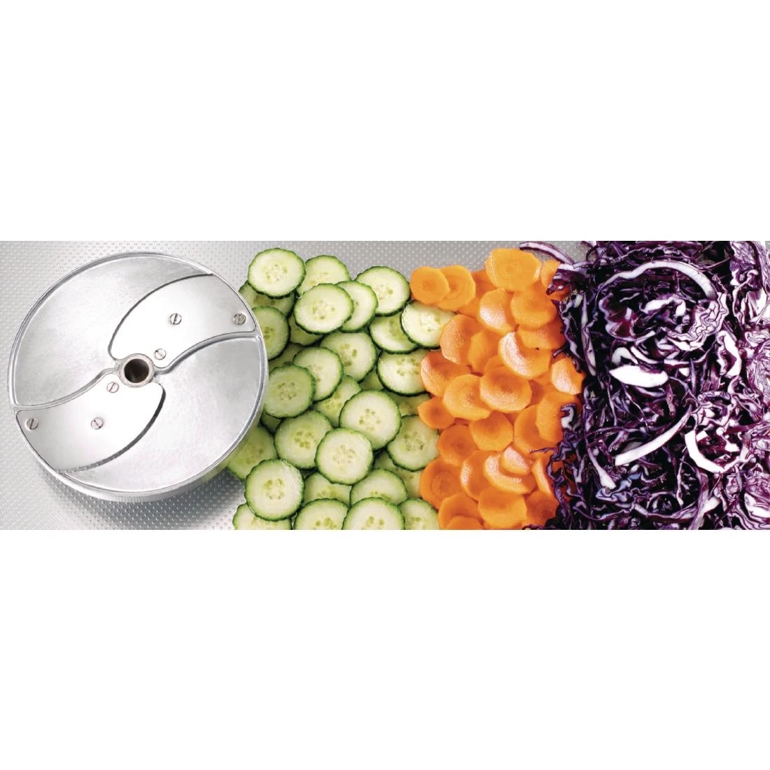 - 2mm Slicer – for vichy carrots, onion rings, cucumbers, cabbage.