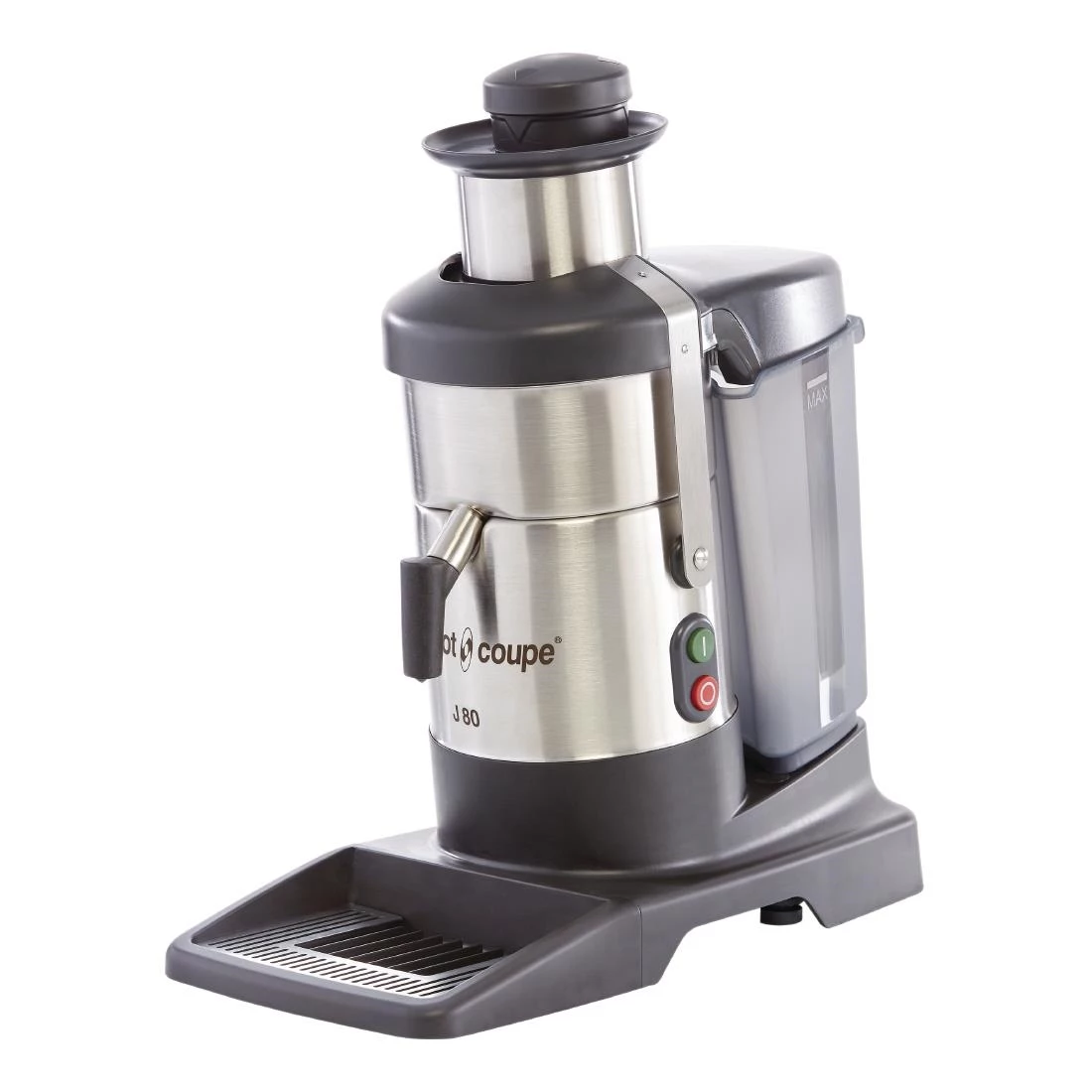 Powerful and quiet, the Robot Coupe J80 Buffet Juicer gives you the commercial performance you need to quickly juice large quantities of fruit or vegetables. Perfect for juice bars, sandwich shops and cafés, the J80 features an innovative feed head which automatically channels fruit through the juicing system. This means you don’t need to stand over the juicer, feeding food with a pusher.