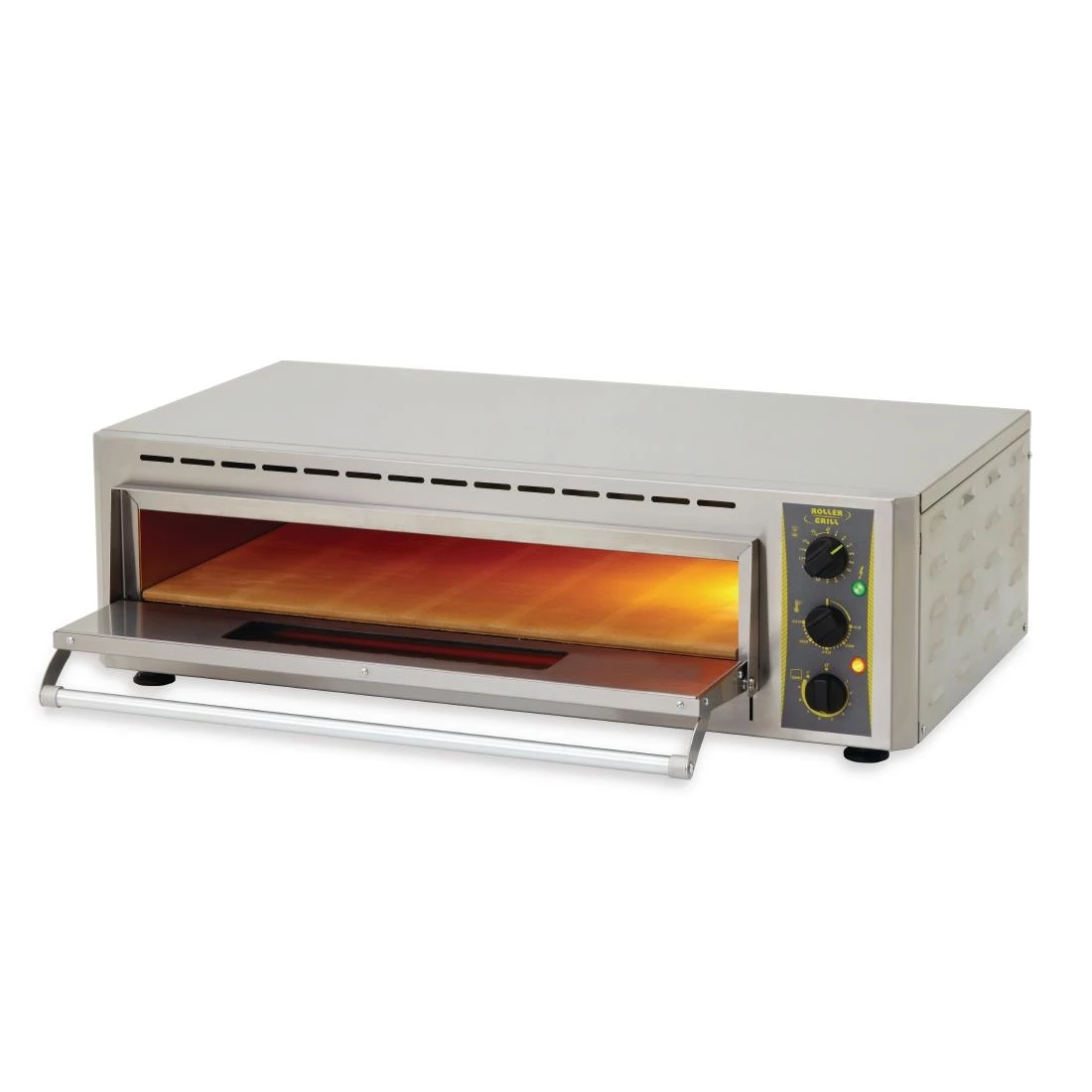 Using an innovative split heat regulation system alongside the more traditional fire stone base, the Roller Grill Double Width Pizza Oven is the perfect choice for both thin base or deep pan pizzas. Helping you to cook with precision and speed, the pizza oven can quickly cook two 16″ fresh pizzas in under 4 minutes, or frozen pizzas in under 5. The oven also doubles as a grill and a holding oven, allowing you to cook toasted sandwiches or hold lasagne. Versatile and powerful – great for the professional kitchen with limited space.