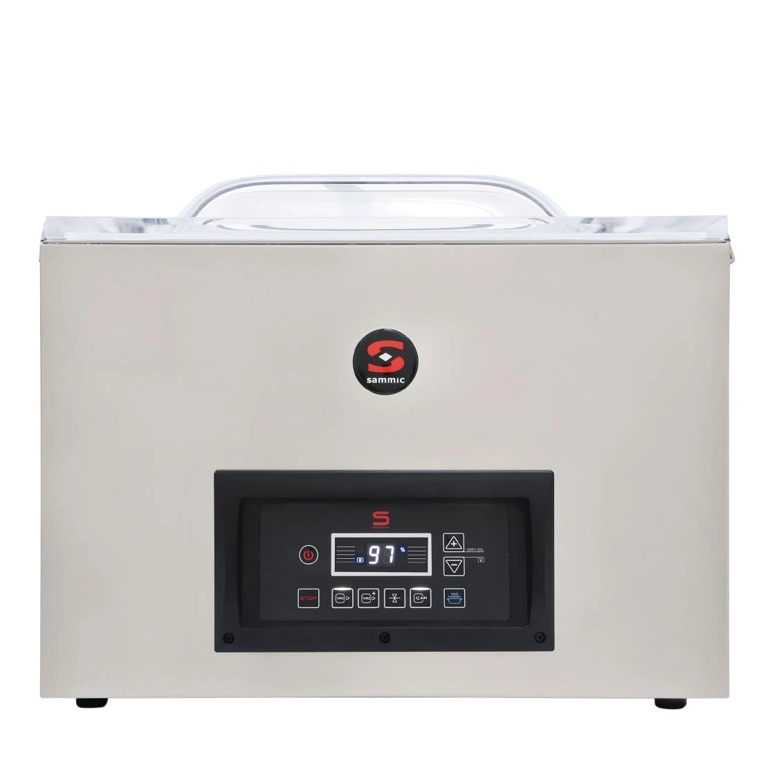 Whether you’re cooking sous vide or simply needing to seal food for storing in the fridge or freezer, the Sammic SE-520 Countertop Chamber Vacuum Pack Machine is the ideal appliance. Helping to reduce waste and save money, the machine quickly and effectively removes air from vacuum bags to extend the lifespan of the product. Digital control alongside the solid Perspex lid help to ensure accurate vacuum sealing results every time, whilst the sizable 560x430mm chamber with dual sealing bars allows even large foods to be packed.