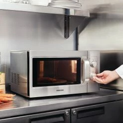 Perfect for cafes, bistros and small restaurants, the Samsung CM1099 is an incredibly energy efficient machine for cooking and reheating food fast. With 5 different power levels and a simple dial timer, it’s exceptionally easy to use and has the versatility you need to quickly get the results you’re looking for. The flat ceramic base ensures there’s plenty of space for lasagne dishes and smaller non-metallic GN pans, whilst being easy to clean, too. A great quality microwave for less demanding sites.