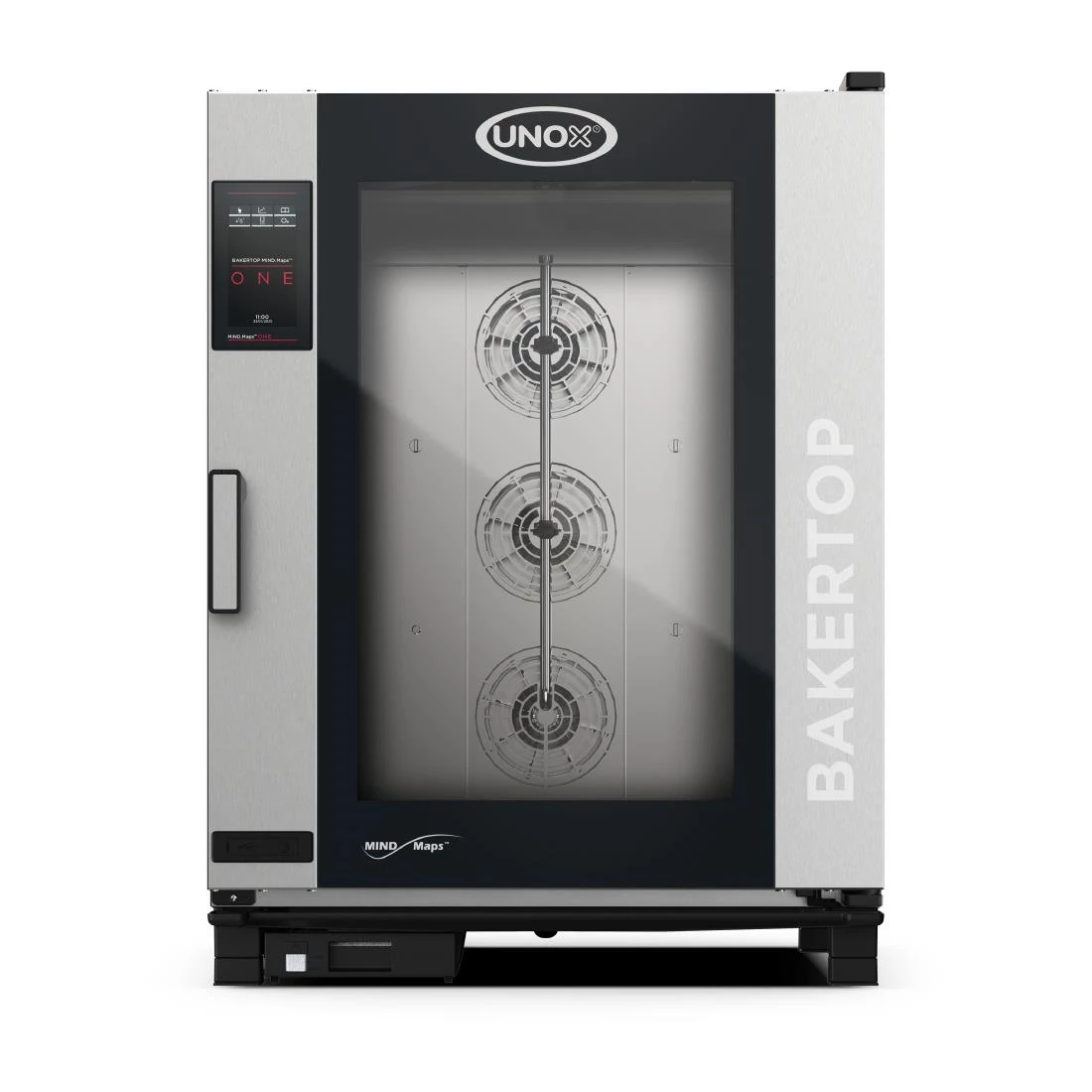 UNOX Bakertop Mind Maps ONE 600 x 400 EU Tray Size Right Hand Hinge 10 Tray Self Cleaning Combi Oven. 860x967x1163 WxDxH (mm).The Unox is the combi oven for pastry and bread making and is perfect for uniform baking with any food load.
