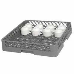 Wash all your cups, dishes and containers in one go with this open cup dishwasher rack from vogue. An open bottom design ensures great cleaning results and quick drying times – ideal for busy kitchen environments. The rounded corners allow a smooth operation of this plate rack to be pushed in and pulled out of any washer.